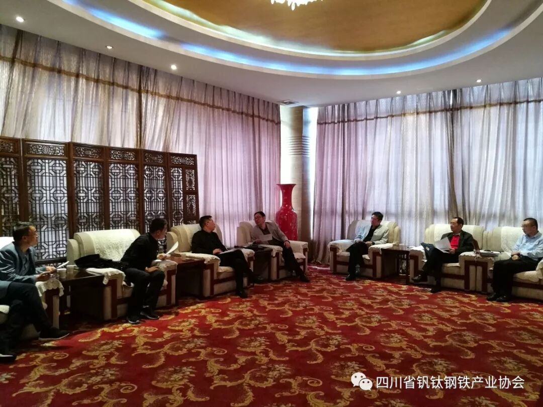 2018年10月16日-17日,西南钒钛钢铁论坛(以下简称“论坛”)常务副理事长兼秘书长张邦绪率秘书处工作人员到2019年论坛大会承办单位——陕钢集团汉中钢铁有限责任公司(以下简称:汉钢公司)召开工作会,讨论论坛2019年大会会务方案,考察会务酒店。陕钢集团营销管理部部长王宏义,汉钢公司党委书记、董事长武军强,总经理助理付成勇等热情接待了秘书处一行,双方在汉钢公司接待中心会议室座谈。