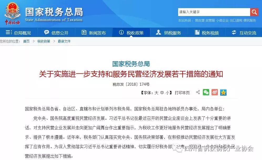 税务总局:关于实施进一步支持和服务民营经济发展若干措施的通知