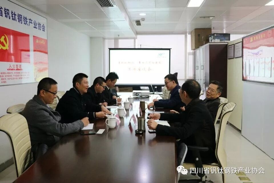 1月28日,攀枝花市投资促进局副局长周佳一行赴川钒钛钢协秘书处,与协会常务副会长兼秘书长张邦绪等开展工作交流。