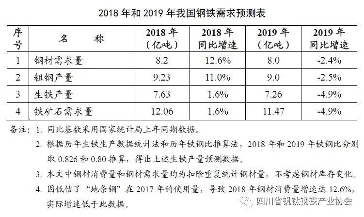 综上,根据国内外经济发展形势以及国内下游行业的发展特点,我院对2018年和2019年我国钢铁需求预测结果如下: