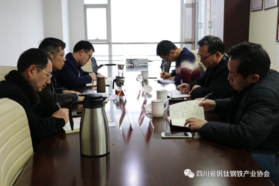 张邦绪向徐瑜一行介绍了协会明年的主要工作安排,重点说明需要德胜集团主持和配合开展的相关工作。协会明年工作重点是以“稳”字(稳价格、稳市场、稳生产)为中心,进一步强化行业自律和市场规范,大力推动热轧带肋钢筋新国标推行。同时,结合钒钛钢铁产业纳入四川省“5+1”现代产业体系契机,跟进具体产业扶持政策的制订和落实情况,积极配合省政府出台更多有利于钒钛钢铁产业高质量发展的扶持政策。
