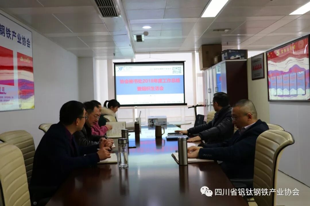1月28日上午,省经信系统社会组织第一联合党支部召开组织生活会暨2018年度工作总结会,会议由四川省经济和信息化系统社会组织第一联合党支部书记、四川省钒钛钢铁产业协会(以下简称“协会”)常务副会长兼秘书长张邦绪主持,秘书处每一名党员围绕政治理论学习、本职工作、廉洁从业及存在的主要问题、今后努力改进措施等方面进行全面回顾总结,开展了批评与自我批评。