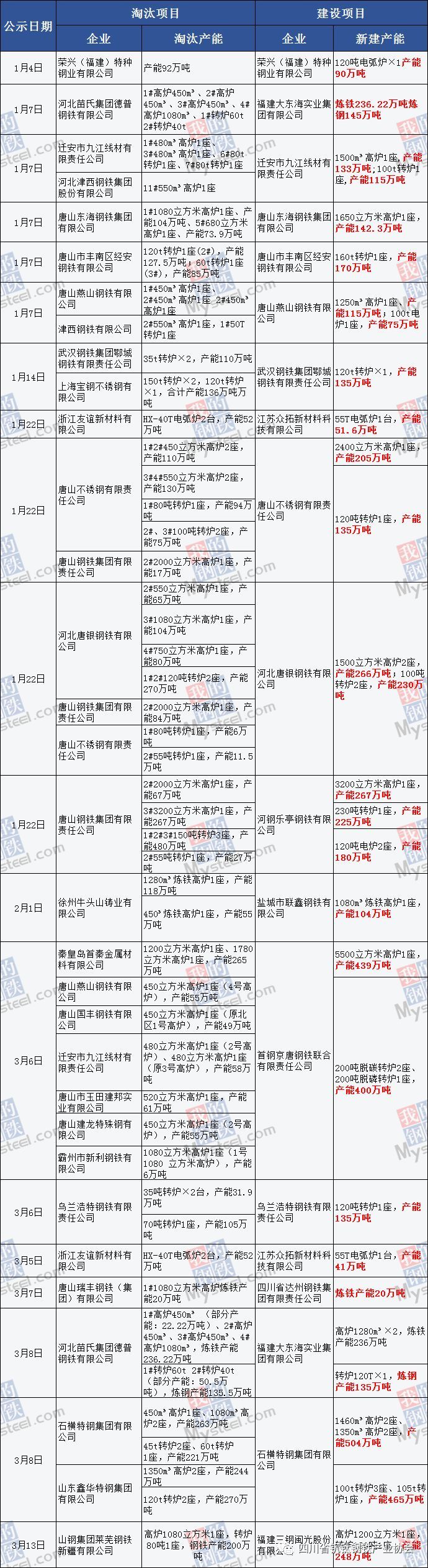 25家钢厂公示产能置换项目,淘汰5069万吨,新建5643万吨!