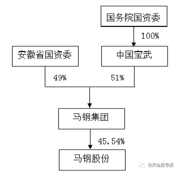 (三)本次划转完成后,中国宝武将持有马钢集团51%股权,成为马钢集团的控股股东,同时,因马钢集团直接持有本公司A股3,506,467,456股,占本公司总股本的比例约为45.54%,系本公司直接控股股东,中国宝武将成为本公司间接控股股东;又因中国宝武由国务院国资委全资拥有,国务院国资委将成为本公司实际控制人。安徽省国资委持有马钢集团股权的比例将由100%降至49%。本公司直接控股股东不变,仍为马钢集团。本公司与中国宝武、国务院国资委及马钢集团、安徽省国资委之间的股权及控制关系如下图所示:
