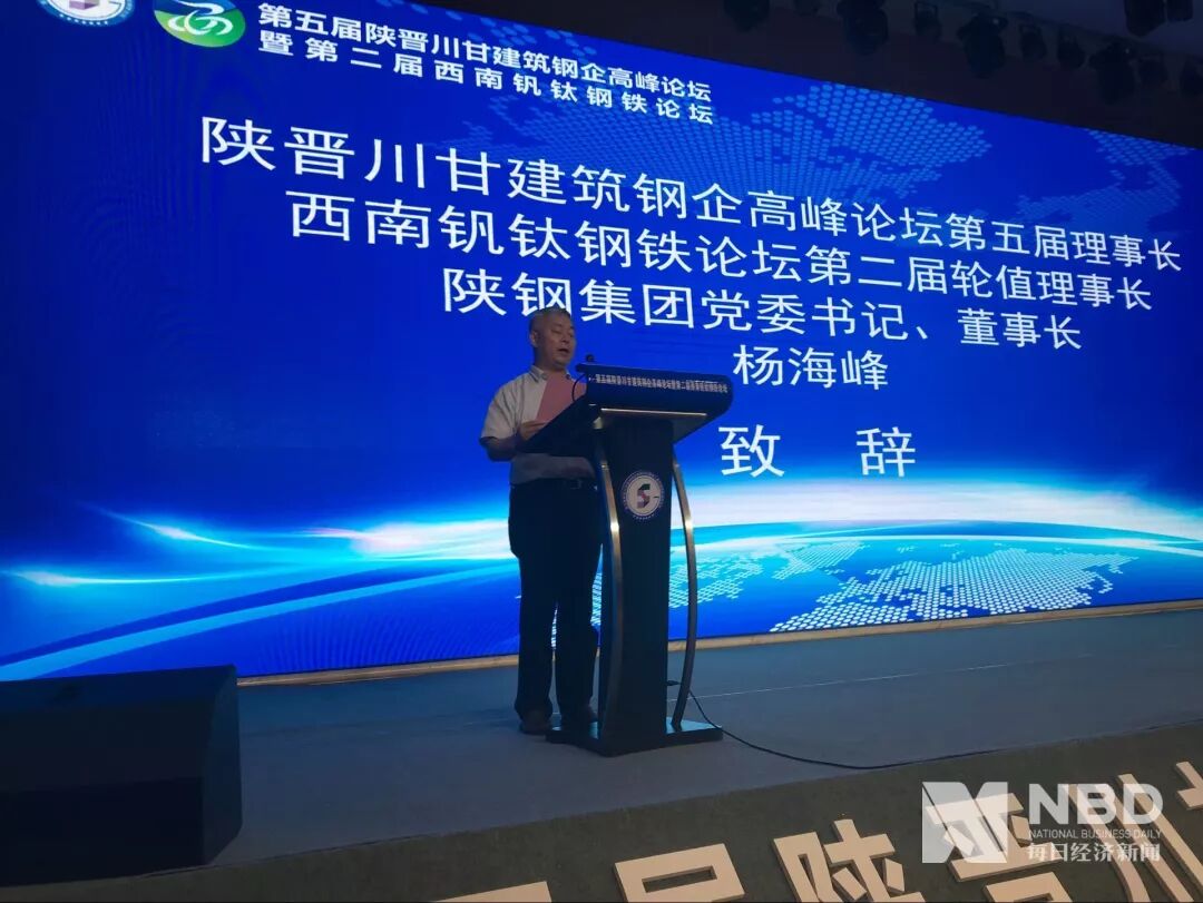 陕钢集团党委书记、董事长杨海峰在论坛上致辞 图片来源:每经记者 胥帅 摄