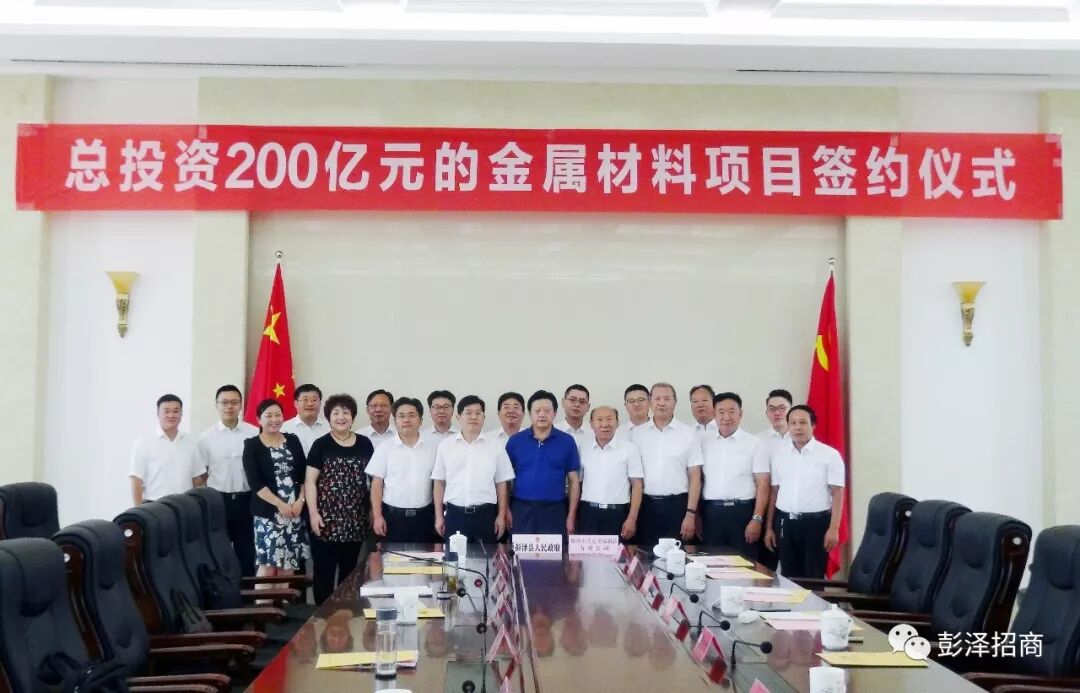 2018年9月5日,彭泽县与廊坊市洸远金属制品有限公司举行总投资达200亿元的金属材料项目签约仪式。县委书记宁小球出席仪式并致辞,县委副书记、县长邵九思代表我县与廊坊市洸远金属制品有限公司签署协议,县委副书记秦岭主持签约仪式。市工信委主任陈南桥,市工信委副调研员高淑春,县人大常委会主任查秋玲,县政协主席张国安,县委常委、县工业园区党工委书记华桦,县委常委、副县长陈博出席签约仪式。河北胜宝钢铁集团公司董事长蔡志生出席签约。