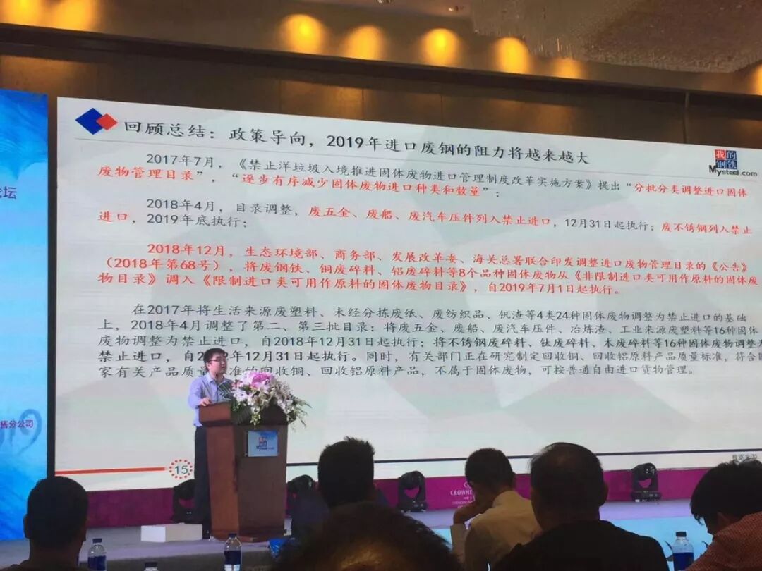 下午14时,会议正式开始。川威集团董事、成渝钒钛科技有限公司总经理代宾作为主办方领导致辞。代宾对光临此次论坛的各位领导及来宾表示了热烈的欢迎和衷心的感谢,并向其介绍了川威集团钒钛科技公司的发展历程。钒钛科技目前具备年产500万吨钢,2万吨钒的生产能力。2018年钢铁产量排名全国35位、全球65位;钒产能中国第2位、全球第4位。钒钛科技真诚希望与各界朋友一起共同分享研讨成果,共同描绘新时代钢市的美好蓝图。并指出今年以来矿价走势较钢价坚挺,成材与铁矿比价大幅下挫,钢铁行业相比前两年整体呈现低迷状态,供大于求,市场形势严峻。面对复杂多变的市场经济,需要大家联合协作,把各自的优势凝结成力量的纽带,以更大的开放拥抱发展机遇,着眼长远发展,尊重经济运行的客观规律,促进钢铁产业朝正确方向健康发展,并预祝本次会议圆满成功。
