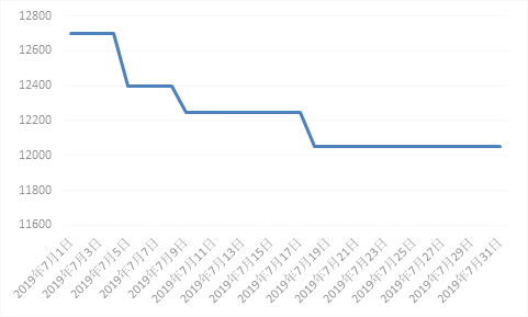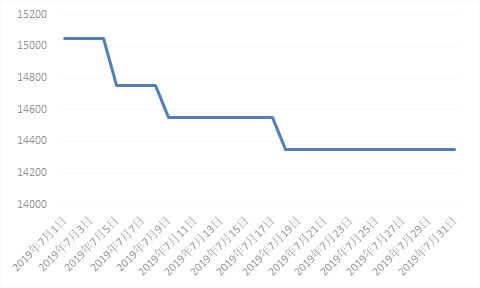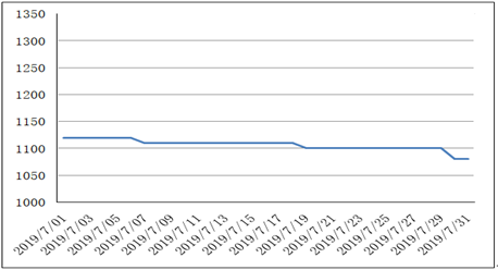 图2 7月份攀枝花20钛精矿市场报价均价走势图(不含税,元/吨)