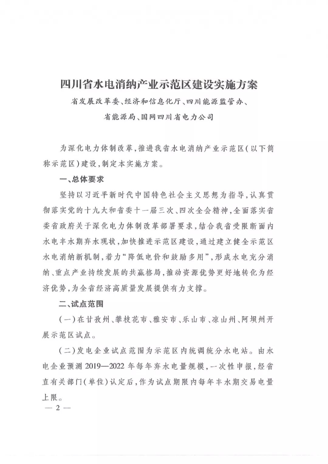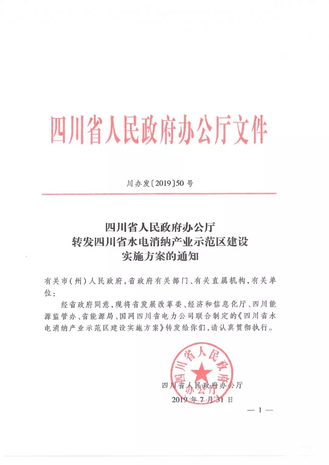 四川省水电消纳产业示范区建设实施方案的通知已发布