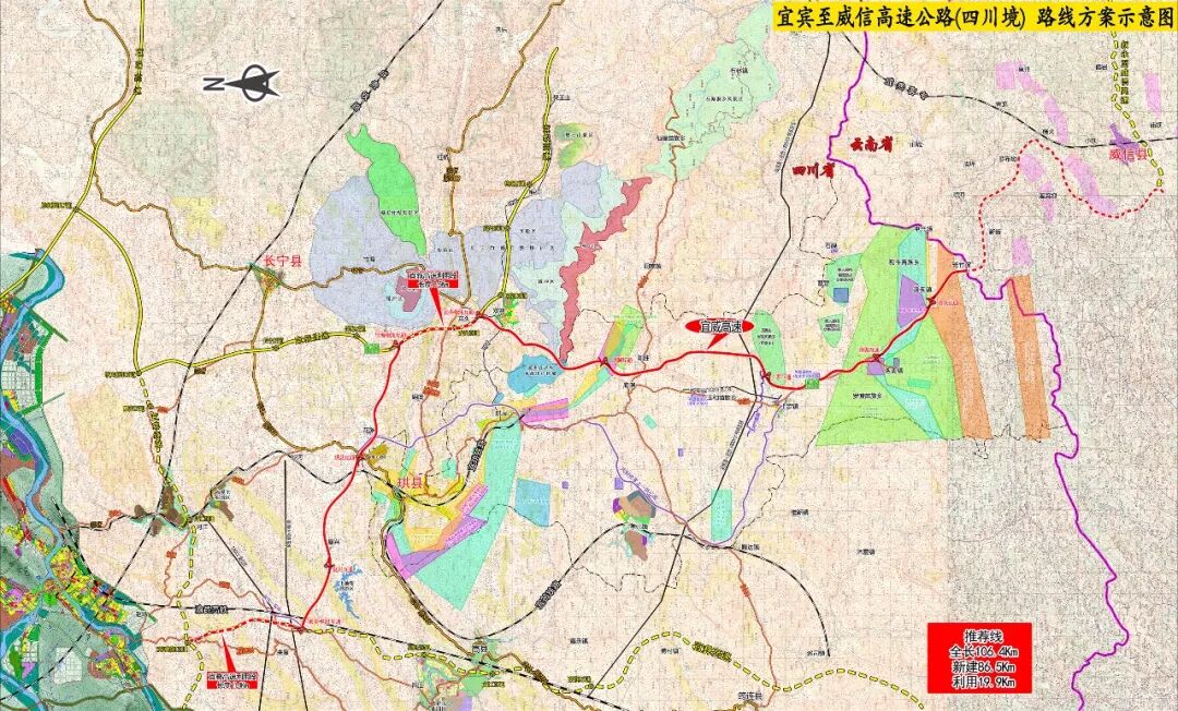 路线起于宜宾绕城高速公路双河枢纽互通,利用宜宾至彝良高速11.4公里至来复,设置枢纽互通与宜彝高速公路转换,经长宁花滩,设竹海枢纽互通接宜叙高速公路,利用宜叙高速8.5公里至龙头,设龙头枢纽互通向南经长宁县双河、珙县底硐、上罗、罗渡、洛表、洛亥,止于斑竹湾(川滇界),接云南境在建宜宾至毕节高速公路威信至镇雄段。