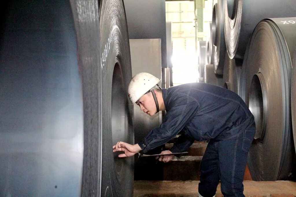 板材厂职工杨柳检查热轧机组生产的2000兆帕高强度汽车板质量情况 李朱华/摄
