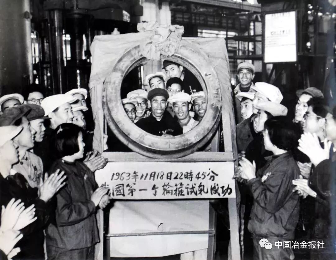 1963年11月18日,由原冶金工业部武汉建设公司承建的马鞍山轮箍厂成功试轧出我国第一个轮箍。(本报资料图库)