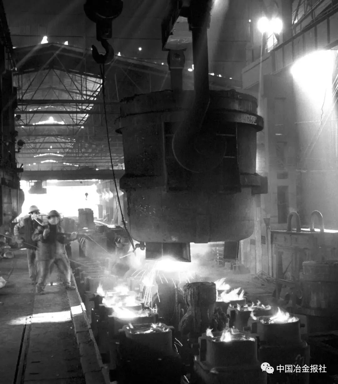 上世纪六十年代我国加大电炉钢的生产。1969年3月,从瑞典引进的50吨电炉在太钢建成投产。图为太钢电炉钢生产场景。(太钢供图)
