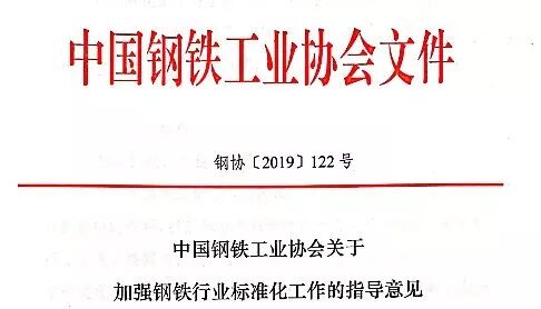2019年9月,钢协发布关于加强钢铁行业标准化工作的指导意见