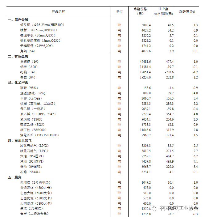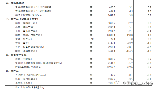 2019年9月中旬流通领域重要生产资料市场价格变动情况