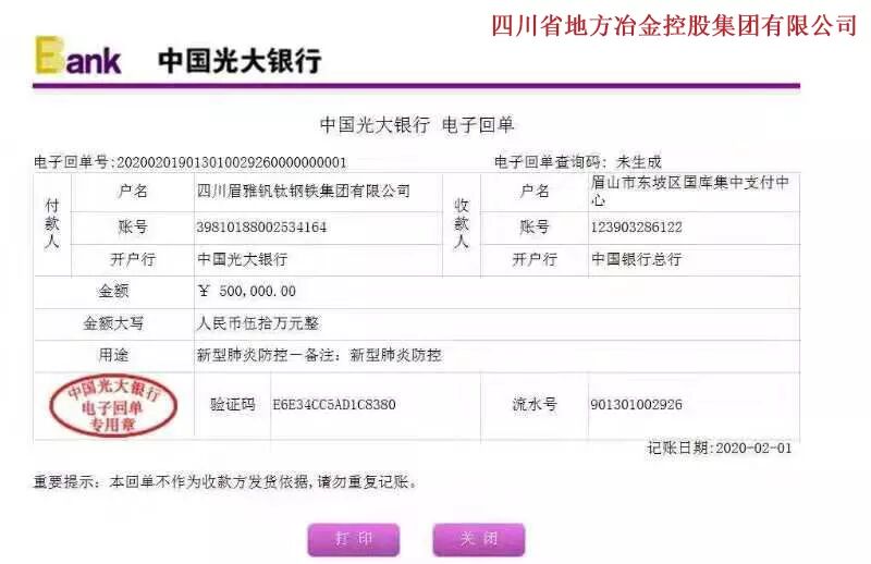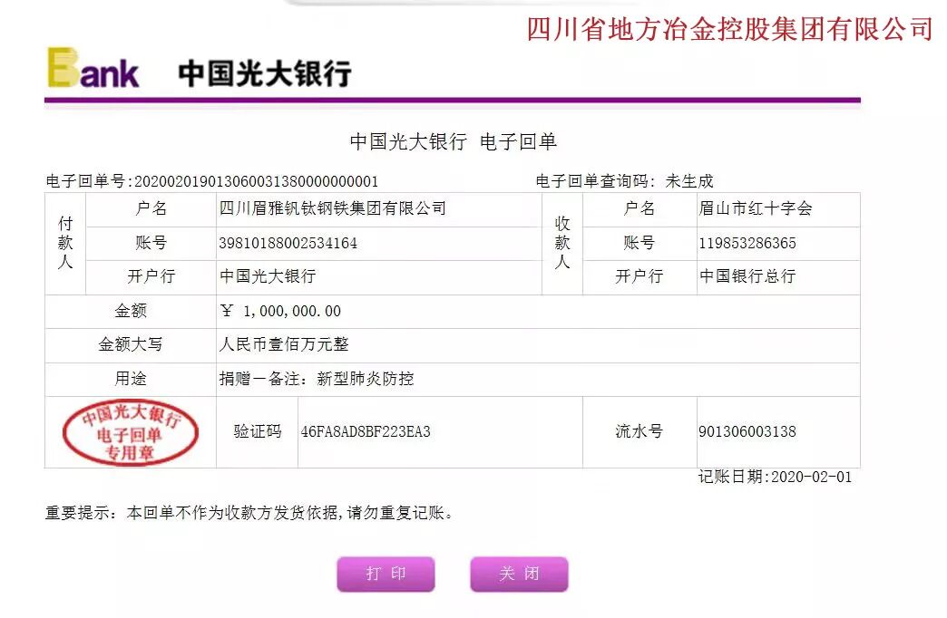 2月1日,冶控集团眉山基地四川眉雅钒钛钢铁集团有限公司通过眉山市红十字会和东坡区国库集中支付中心共捐款150万元。该款项将用于定向支援新型冠状病毒感染的肺炎疫情防控工作。