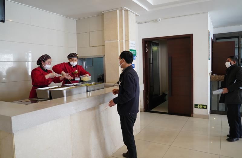 公司及时封闭其它进出大门,只保留两个大门,人员排队入厂接受体测检测,排队间距1米以上。公司严格要求上班人员规范佩戴口罩,严禁一切窜岗聚集,必须当面汇报工作的人员,保持距离1米以上。公司取消在会议室召开的所有调度会、专题会、安全会、上下班会等会议,一律采用网络视频、微信群召开。当班员工只能在所属片区食堂用餐,严格按照错时就餐时间表到食堂打饭,且自带餐具,排队打饭保持1米以上距离,打饭后只允许带回本岗位食用。