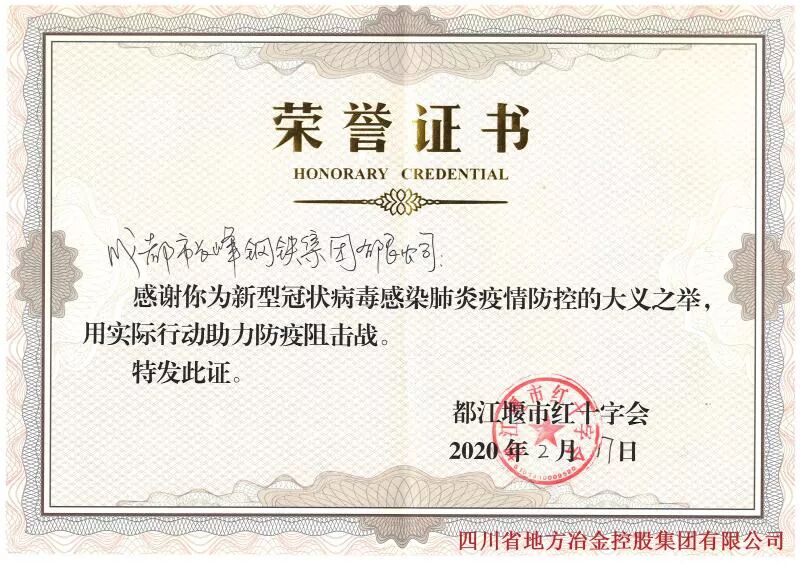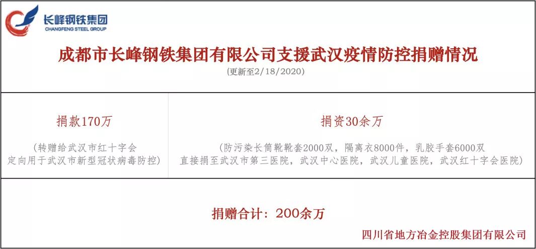 - 冶控集团都江堰基地成都市长峰钢铁集团有限公司支援疫情防控工作捐款捐物共200余万元