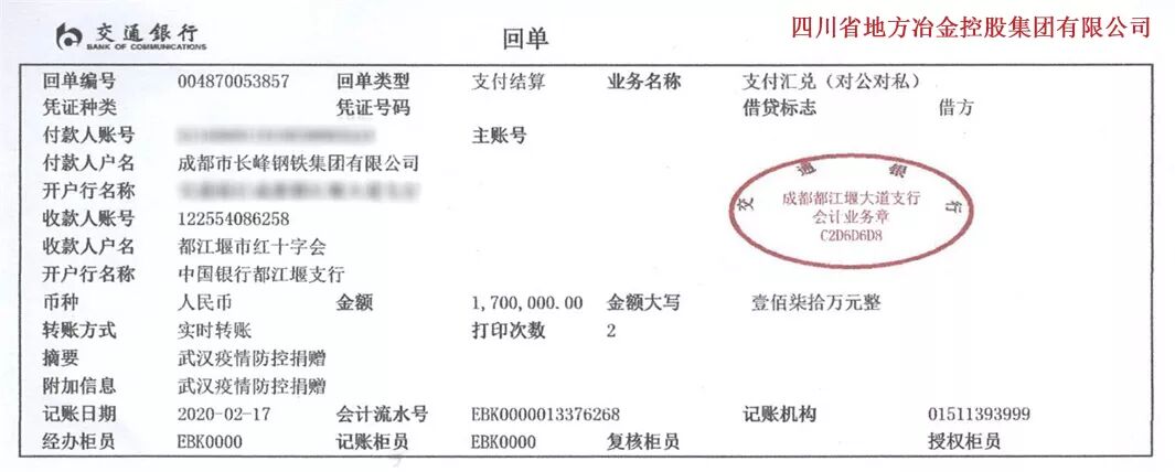 - 冶控集团德阳基地四川省绵竹金泉钢铁有限公司捐款100万抗击疫情