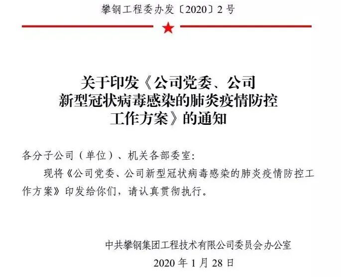 - 攀枝花钢城集团公司下发《关于疫情期间加强安全生产工作的紧急通知》
