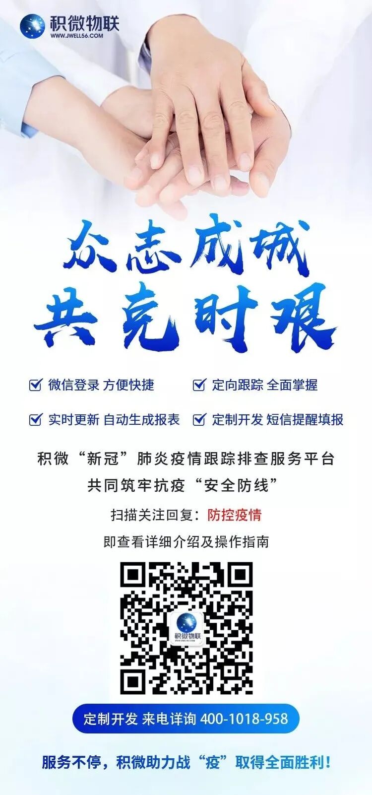 为了实现疫情排查信息填报的快准全,1月31日,积微技术研发团队开发的“积微新冠肺炎疫情防控跟踪排查服务平台”正式发布使用。其利用信息化、大数据等优势,成功实现填报方便快捷、报表一键生成、排查准确全面等功能。目前,该平台已经正式对外推广,已有20多家企业使用。