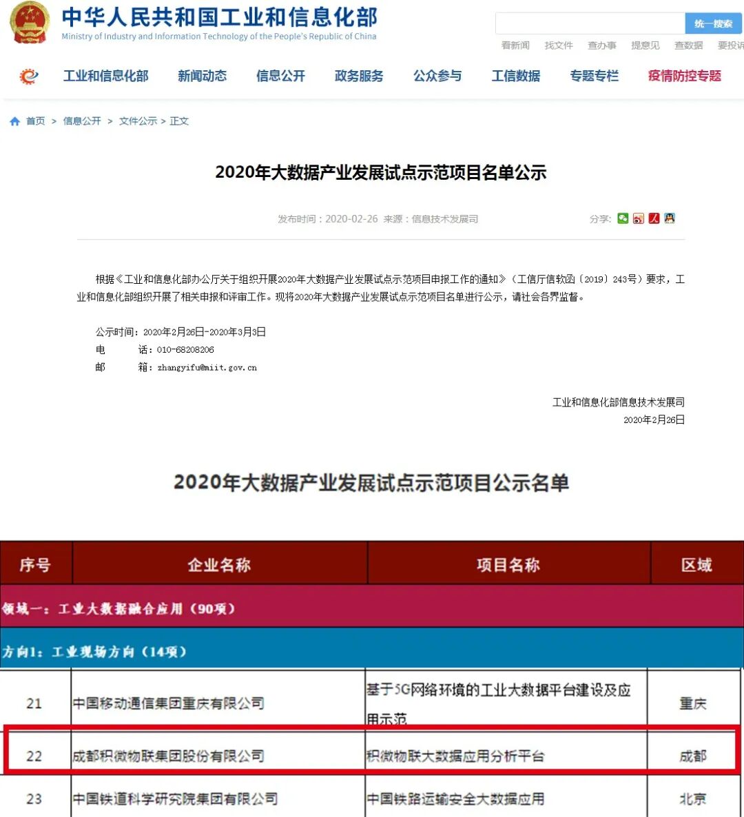 积微物联入选工信部2020年大数据产业发展试点示范项目