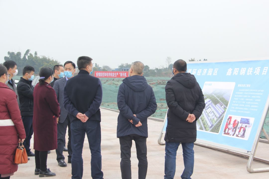 2020年3月5日上午,四川省发改委经贸处处长蒲晓筠率队一行在合江县县委常委、常务副县长王晓谦、合江循环经济产业园主任王壹立、鑫阳钒钛钢铁有限公司董事长刘义腾、总经理刘义峰等的陪同下,前往冶控集团泸州基地鑫阳钒钛钢铁项目,现场调研指导了新冠肺炎的疫情防控、复工复产工作,并针对疫情对项目建设、设备安装的影响等关键工程情况进行了深入了解。