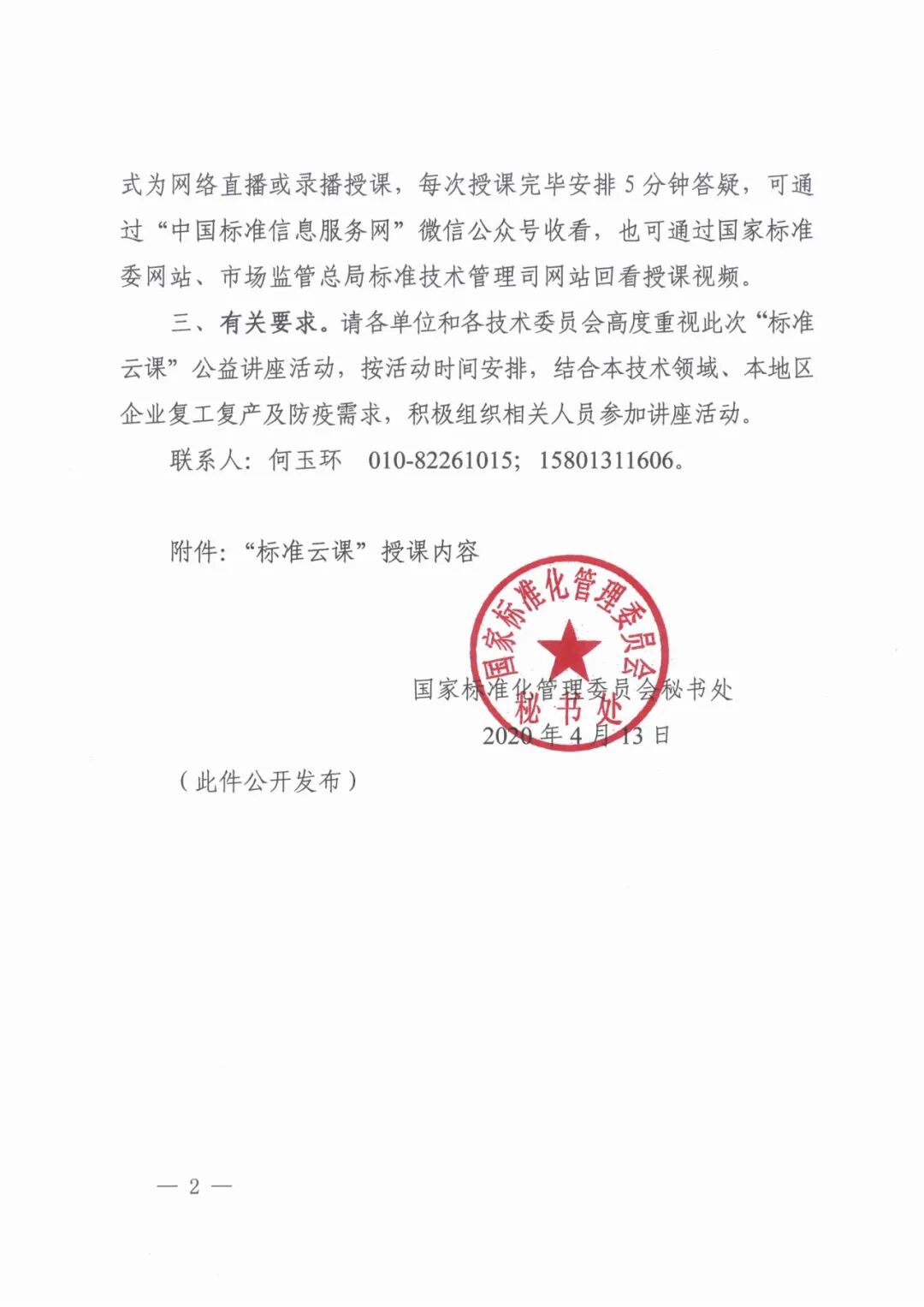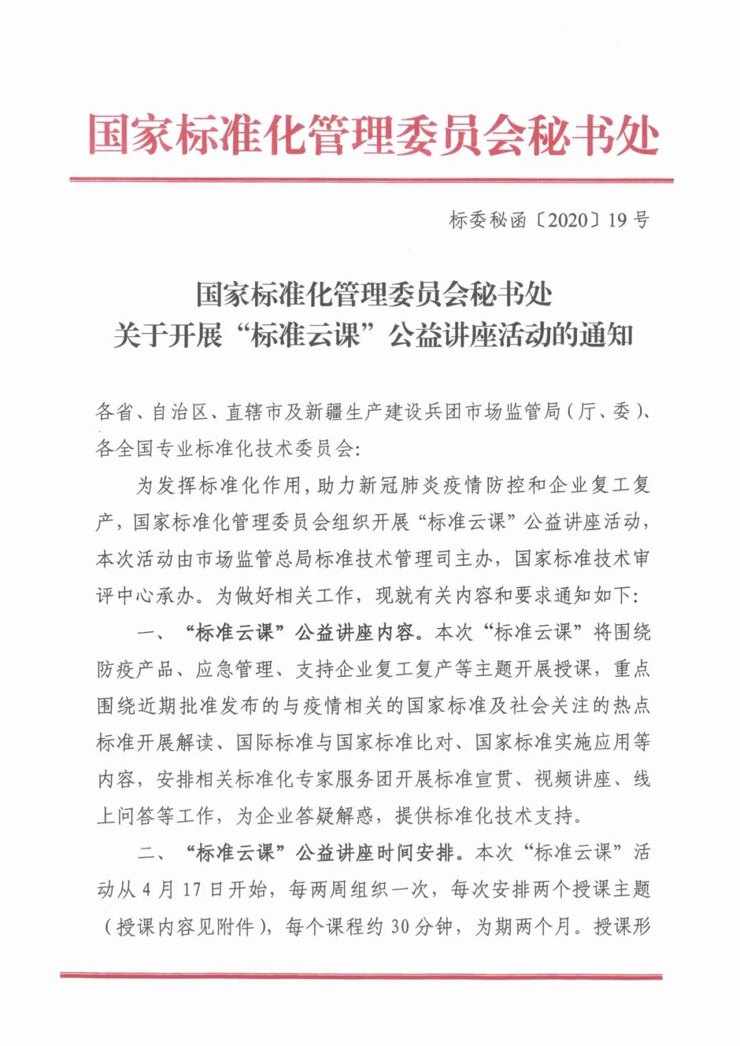 国家标准化管理委员会秘书处关于开展“标准云课”公益讲座活动的通知