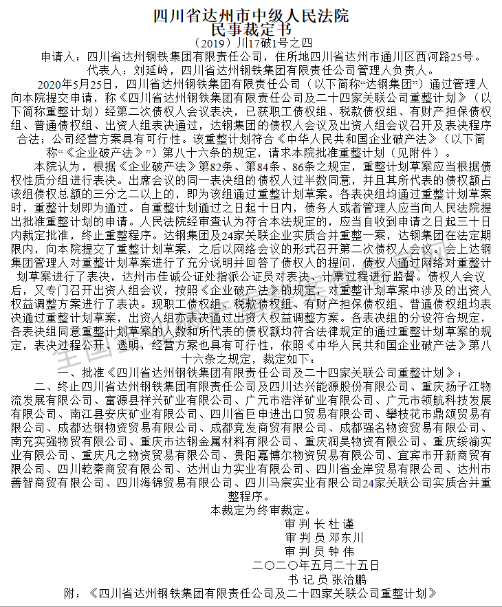 重磅!四川达钢集团司法重整获批
