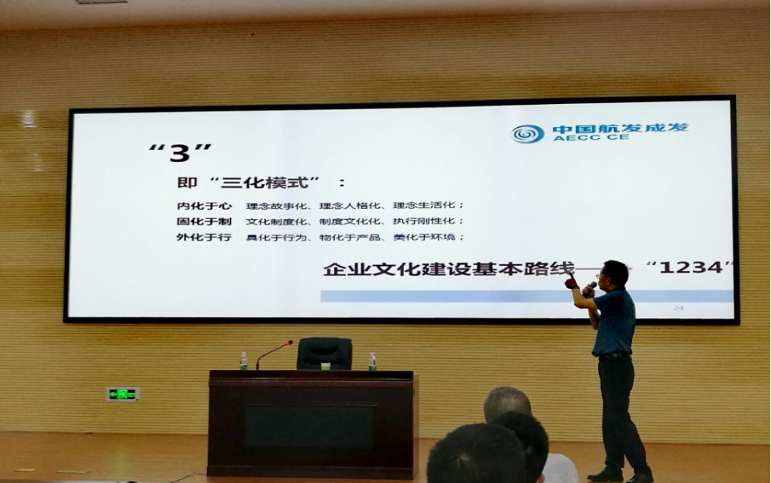 张邦绪从文化怎么看、企业文化是什么,企业文化有什么用,企业文化怎么干,以及品牌建设的思考和建议等方面,深入浅出地解析了企业文化建设的首要原则是以人为本,先进文化力就是价值观的转化力,企业文化建设必须重视顾客导向、合作导向、创新导向的思维习惯等;同时,他结合中国航空航天工业的独特属性,强调文化建设规划要结合实际,在航空发动机领域,更需要专注、标准、精确、秩序和“厚实精神”;他还结合德国制造的实例,认为德国制造强调在设计和材料使用上,注重内在质量、安全系数和耐用性胜过外观和华而不实的功能等,与中国航空发动机集团注重耐用、可靠、安全、精密的要求具有高度契合性。