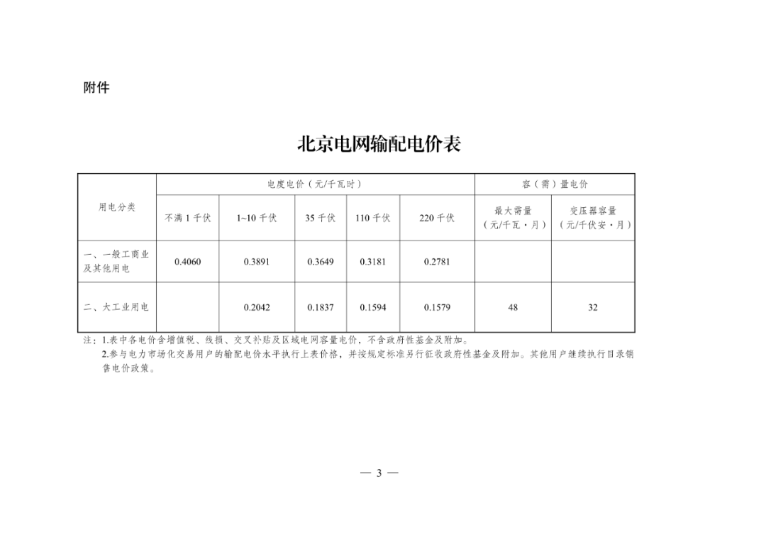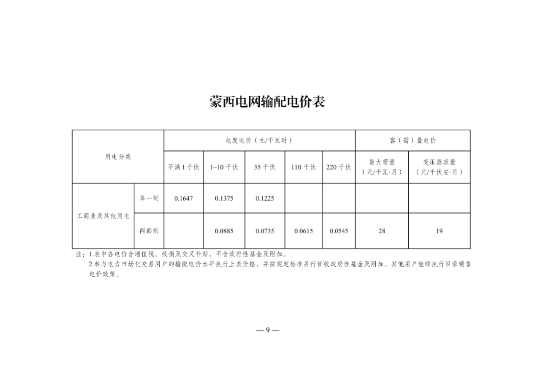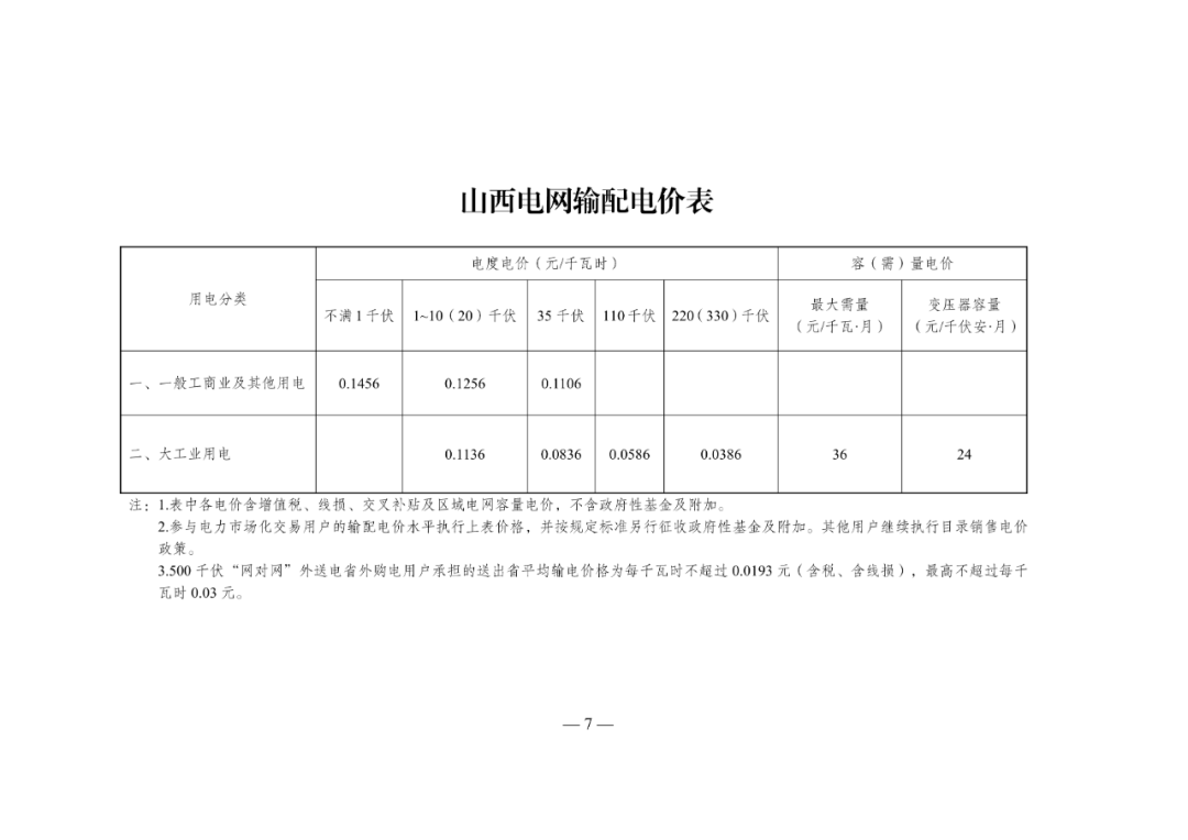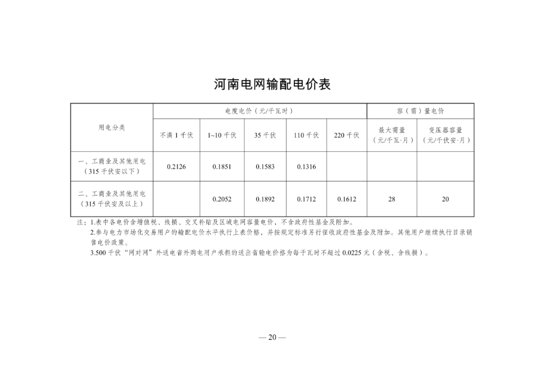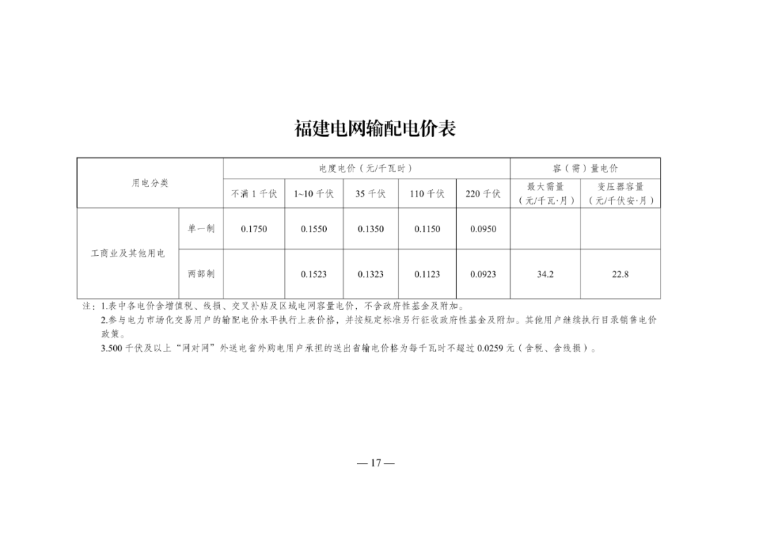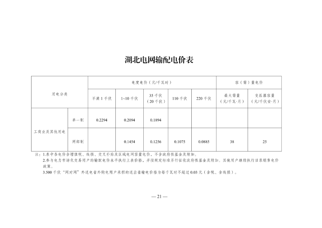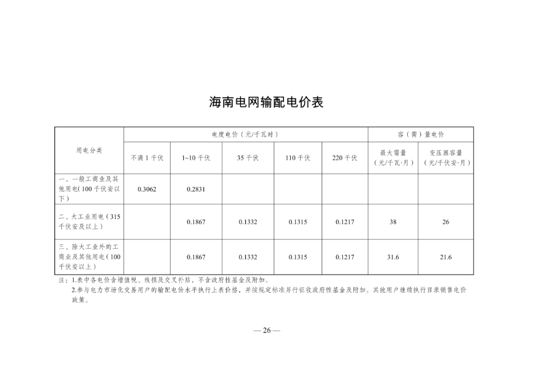 一、各省级电网输配电价(含增值税、线损、交叉补贴和区域电网容量电费,下同)具体见附件。