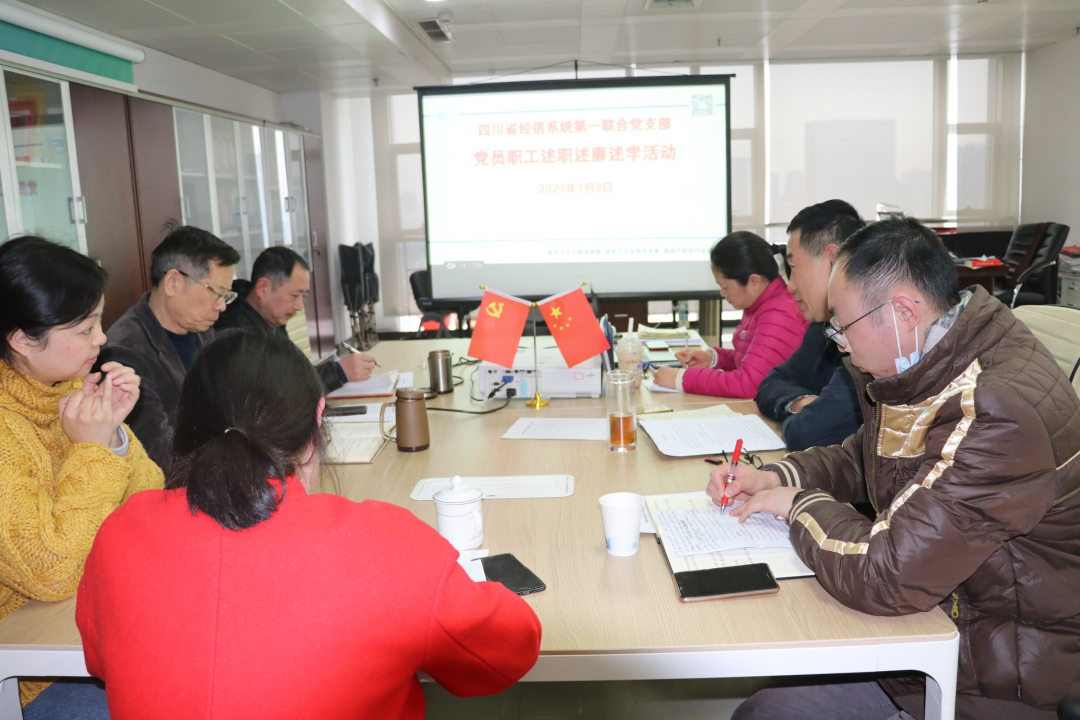 1月8号下午,省经信系统社会组织第一联合党支部开展了党员职工述职述廉述学暨民主评议党员活动。四川省经济和信息化系统社会组织第一联合党支部书记、四川省钒钛钢铁产业协会(以下简称“协会”)常务副会长兼秘书长张邦绪主持会议。