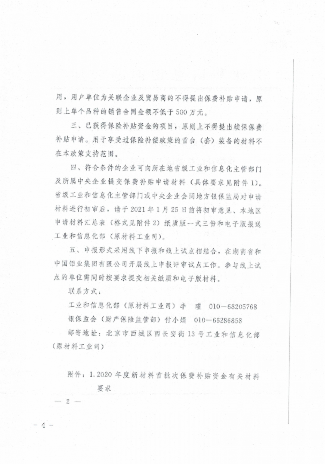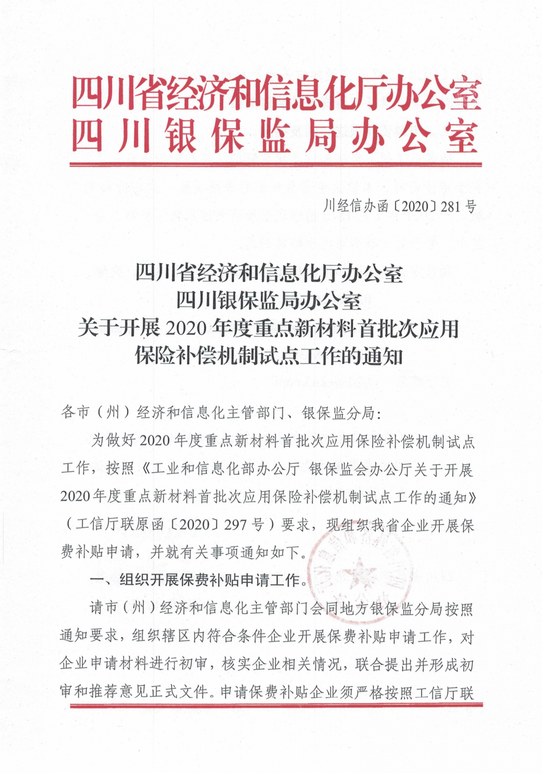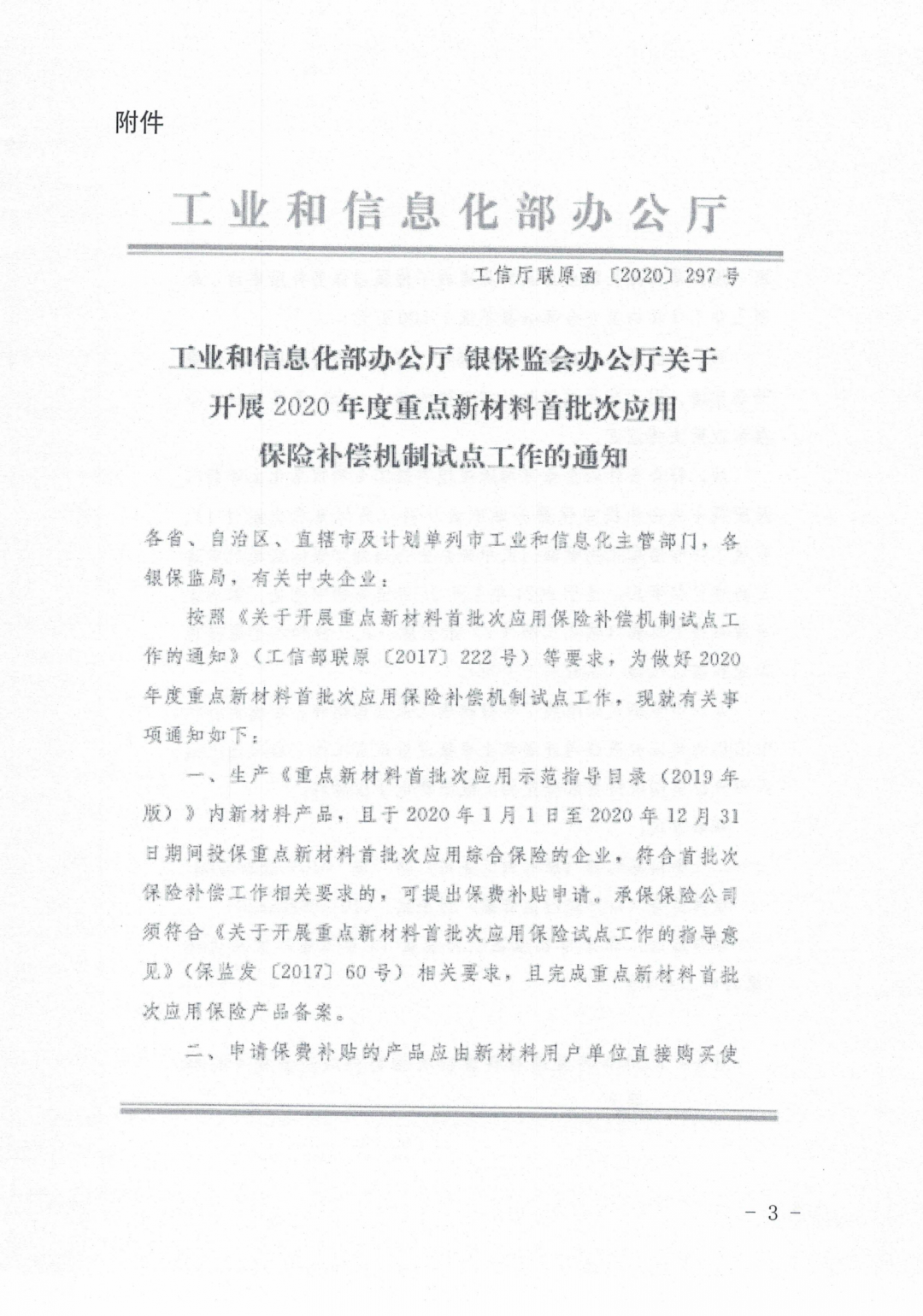 附件:关于开展2020年度重点新材料首批次应用保险补偿机制试点工作的通知
