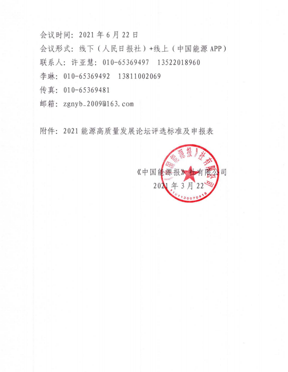 2021年是中国共产党成立100周年,是“十四五”规划开局之年。由中国能源报主办的以“传承百年红色基因 助推绿色转型发展”为主题的2021能源高质量发展论坛,将于6月22日在人民日报社召开。