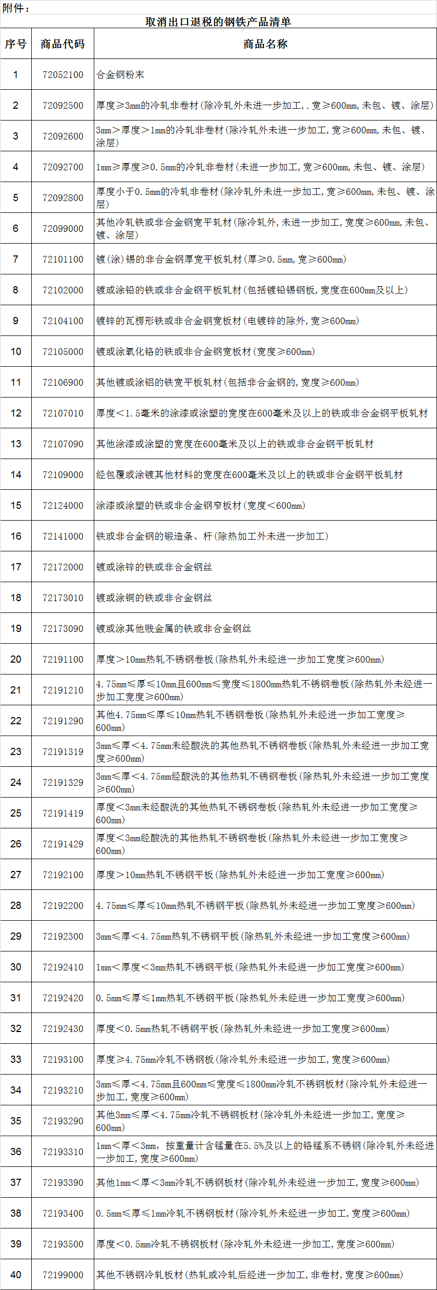 原文链接:关于取消部分钢铁产品出口退税的公告