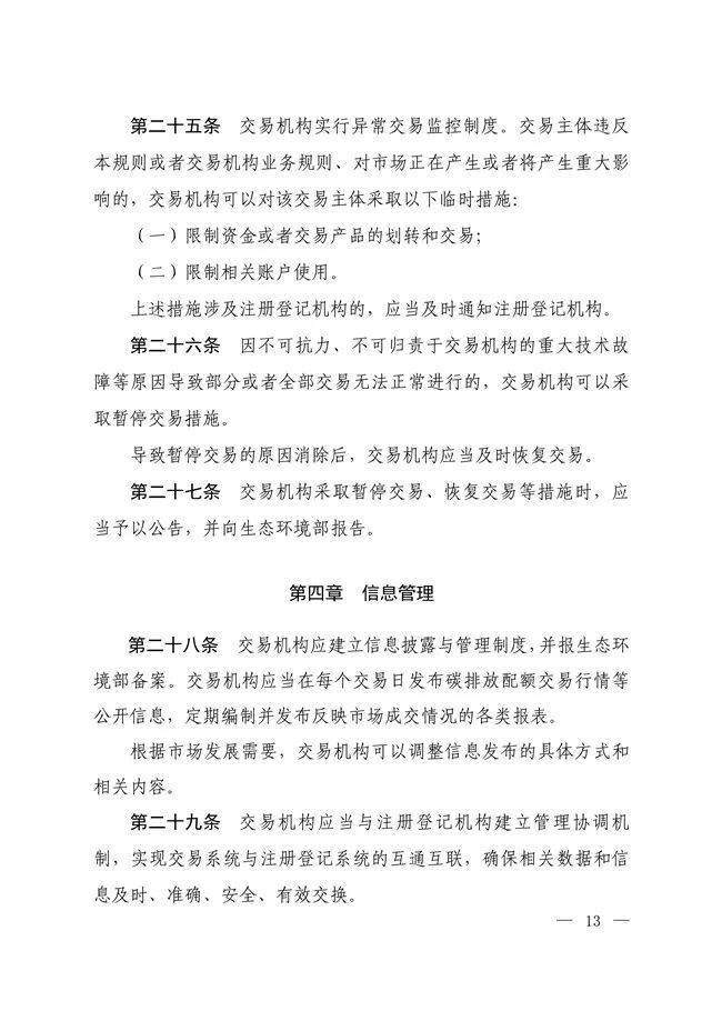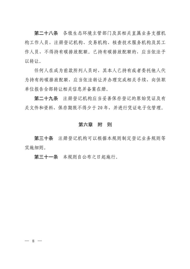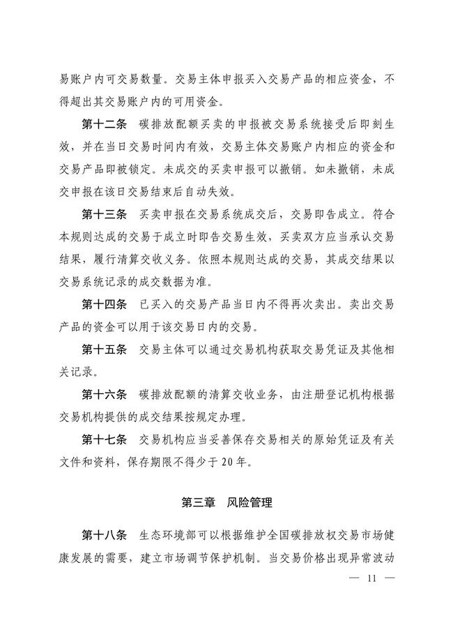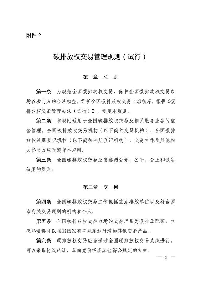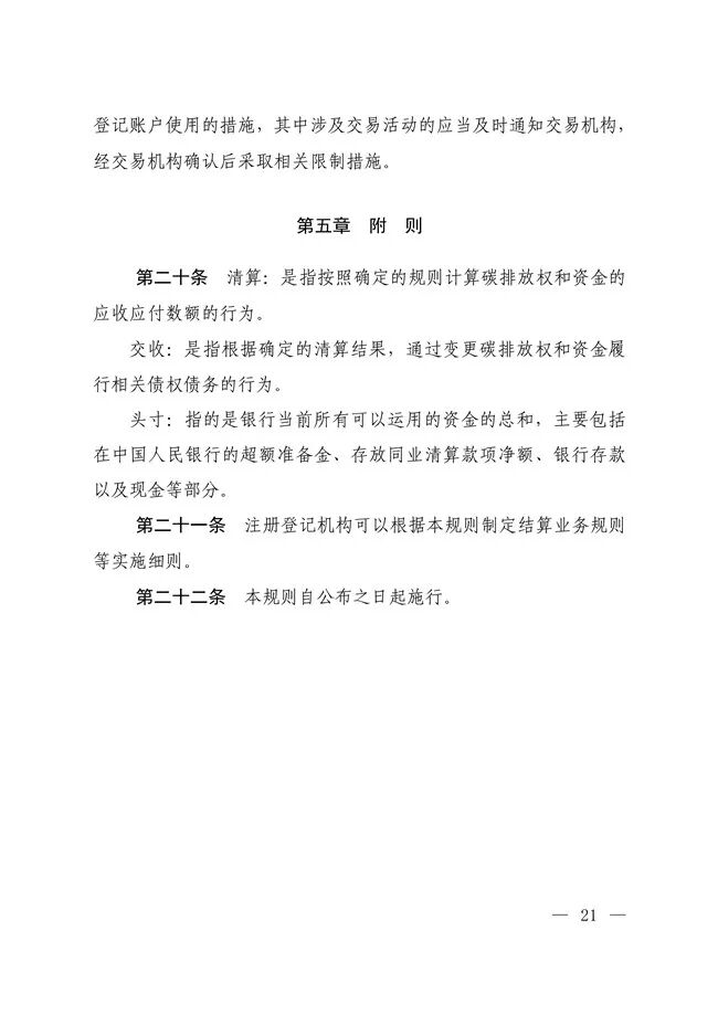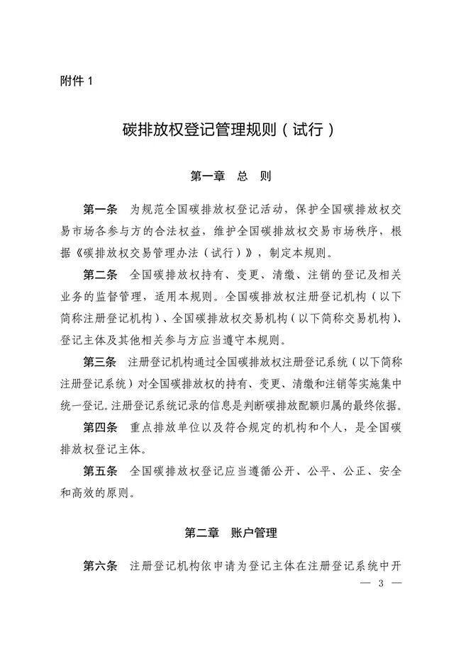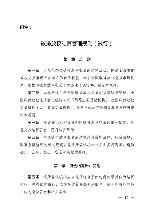 三、《碳排放权登记管理规则(试行)》《碳排放权交易管理规则(试行)》和《碳排放权结算管理规则(试行)》自本公告发布之日起施行。