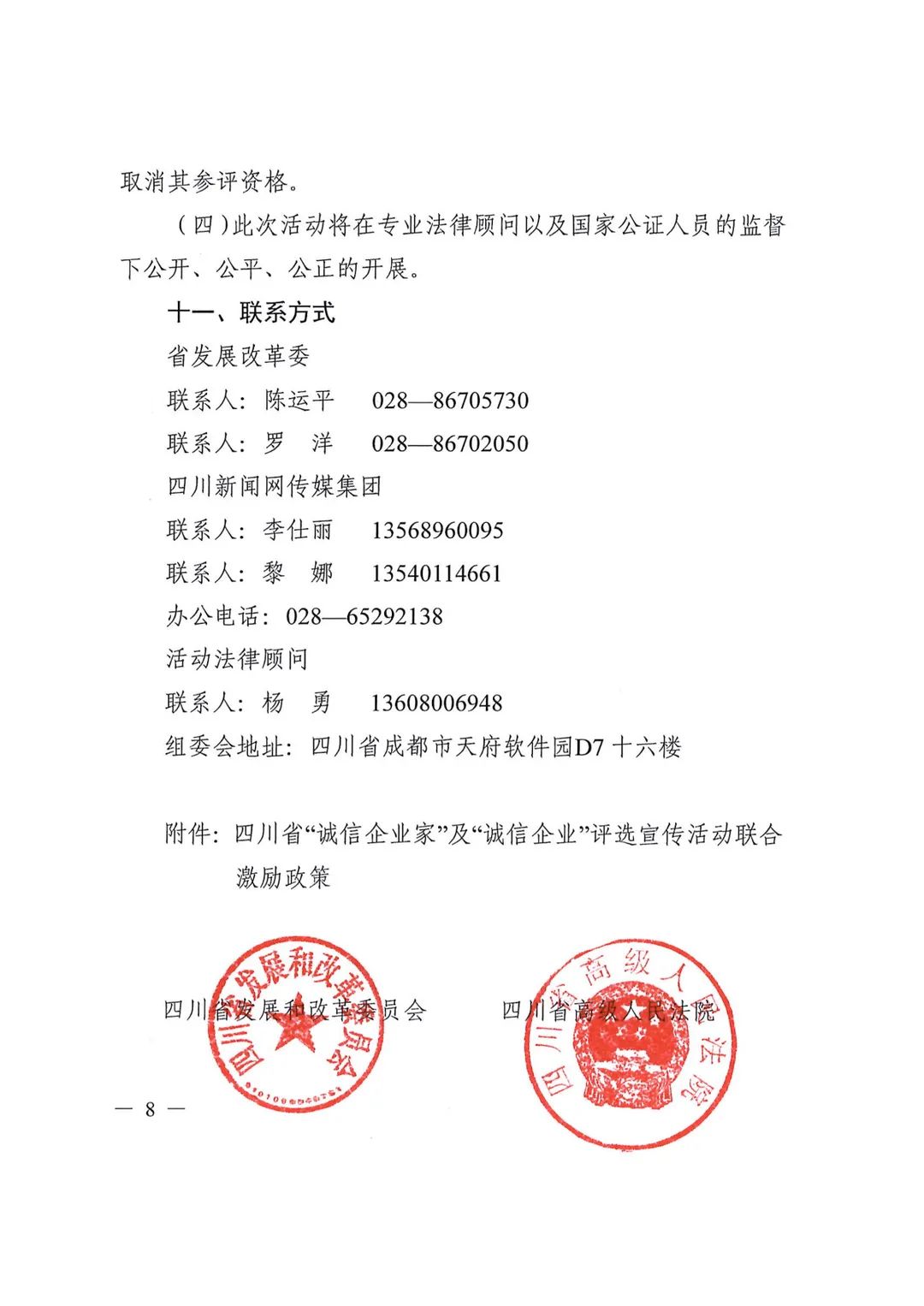 关于转发《关于联合开展四川省“诚信企业家”及“诚信企业”评选宣传活动的通知》的 通知