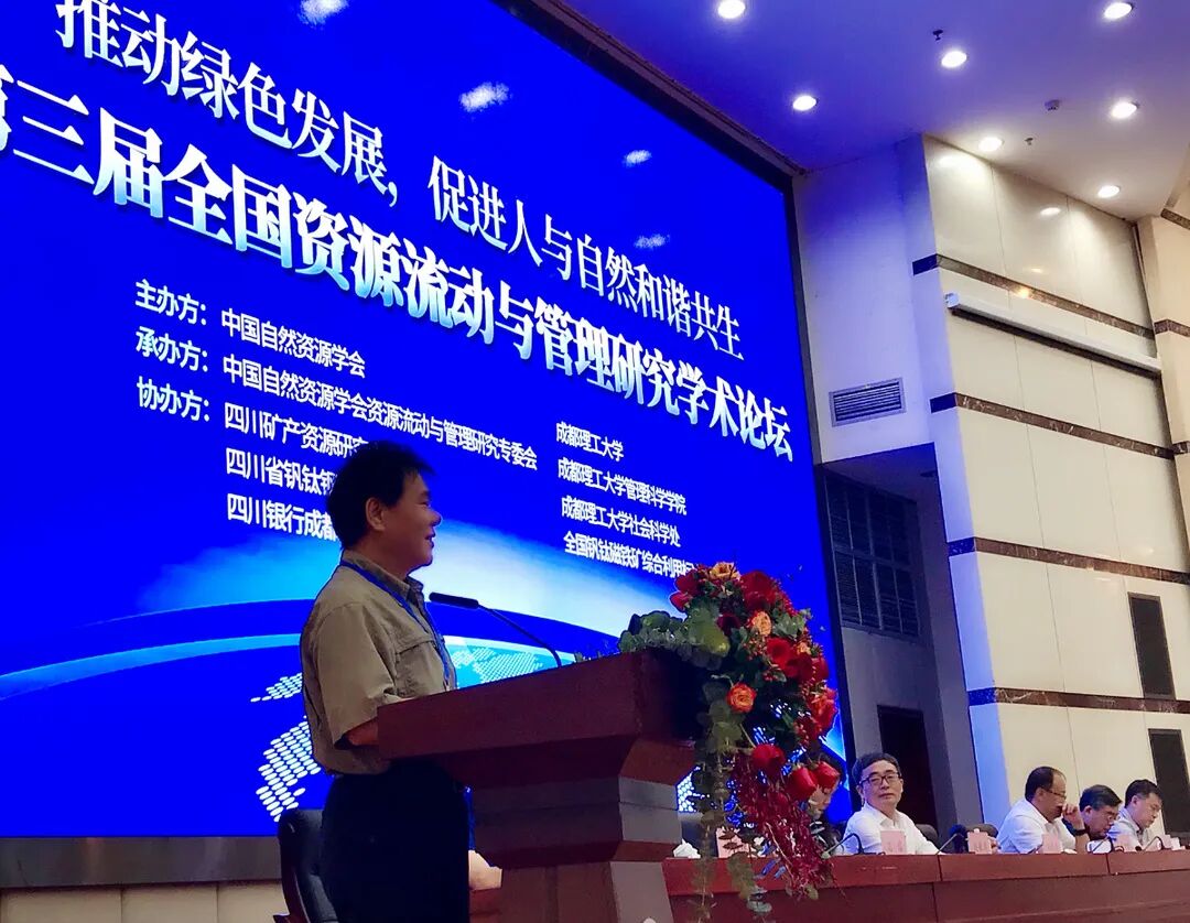 6月17日,中国自然资源学会第三届全国资源流动与管理研究学术论坛在成都理工大学举行,省政府参事室特约研究员、协会高级顾问张邦绪,应邀在论坛上做“攀西钒钛资源的战略地位及高质化运用路径”演讲。