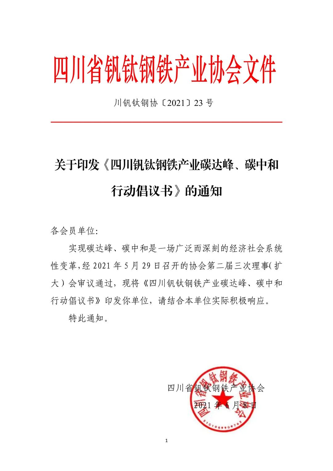 在绿色低碳的新征程上,四川钒钛钢铁行业将勠力同心,笃力前行。为此,协会在2021年5月29日召开的第二届三次理事(扩大)会上审议通过了《四川钒钛钢铁产业碳达峰、碳中和行动倡议书》,发出“双碳行动”倡议。全文如下: