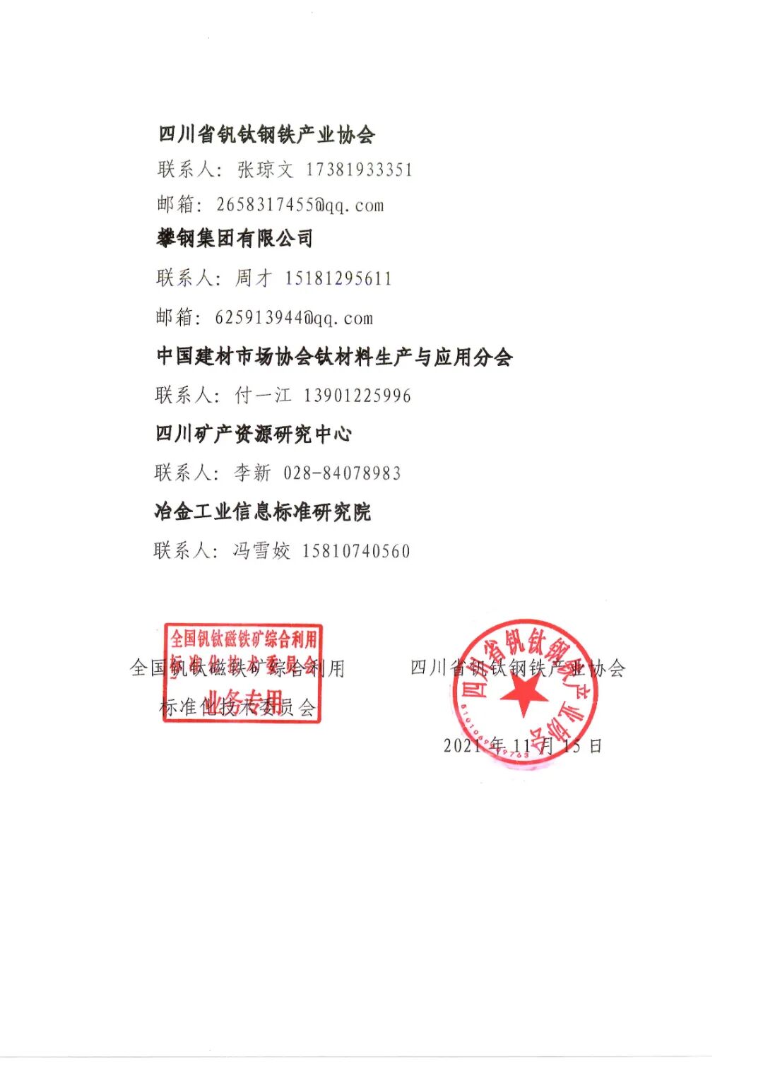 11月15日下午,2021中国·攀西钒钛论坛筹备组召开视频会形成决议:根据疫情防控需要,经请示攀枝花市政府同意,原定于2021年11月29-12月1日在四川省攀枝花会展中心召开的“2021中国·攀西钒钛论坛”,延期举办。