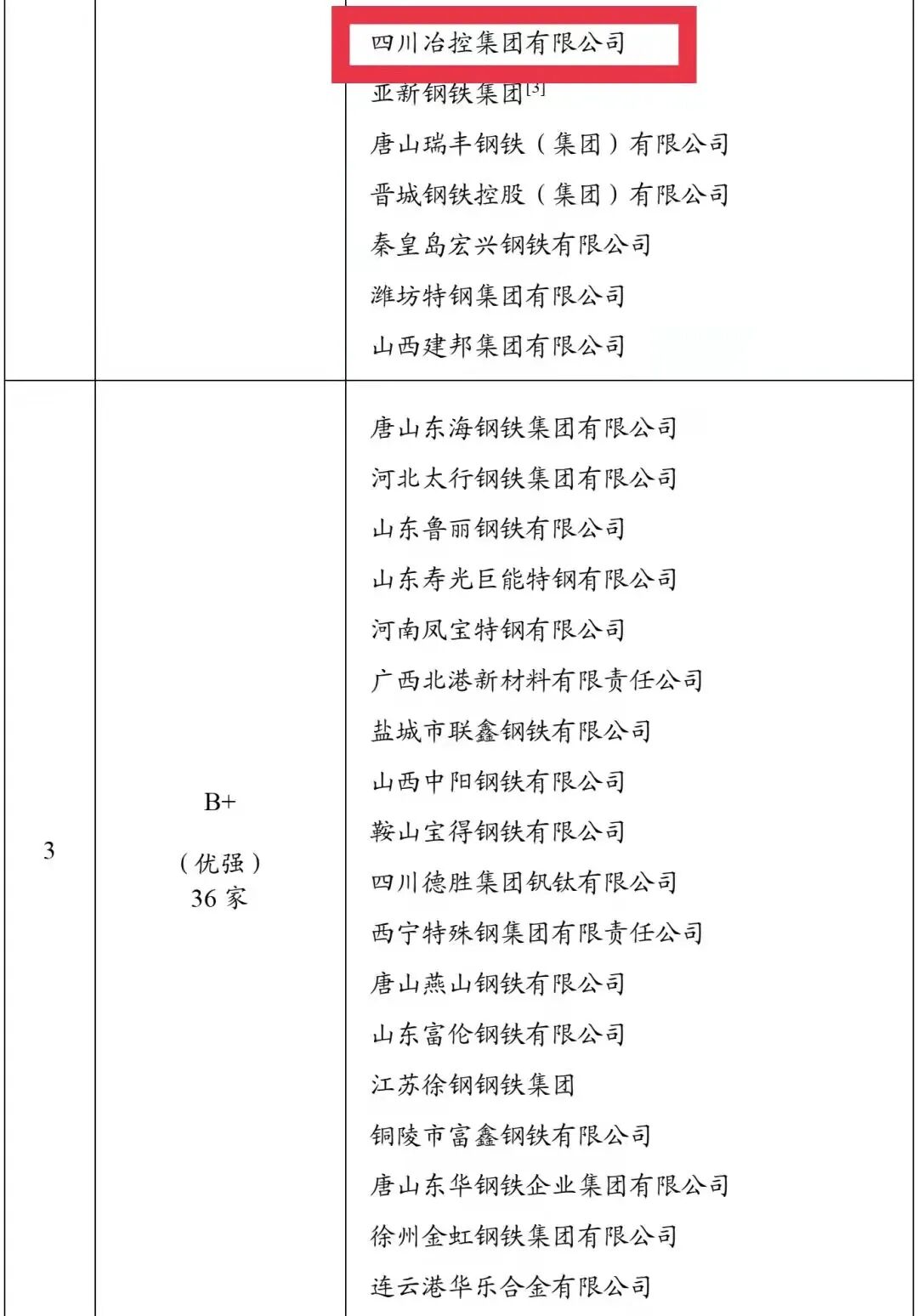 冶控集团获评中国钢铁企业竞争力A级,进入“竞争力特强”梯队