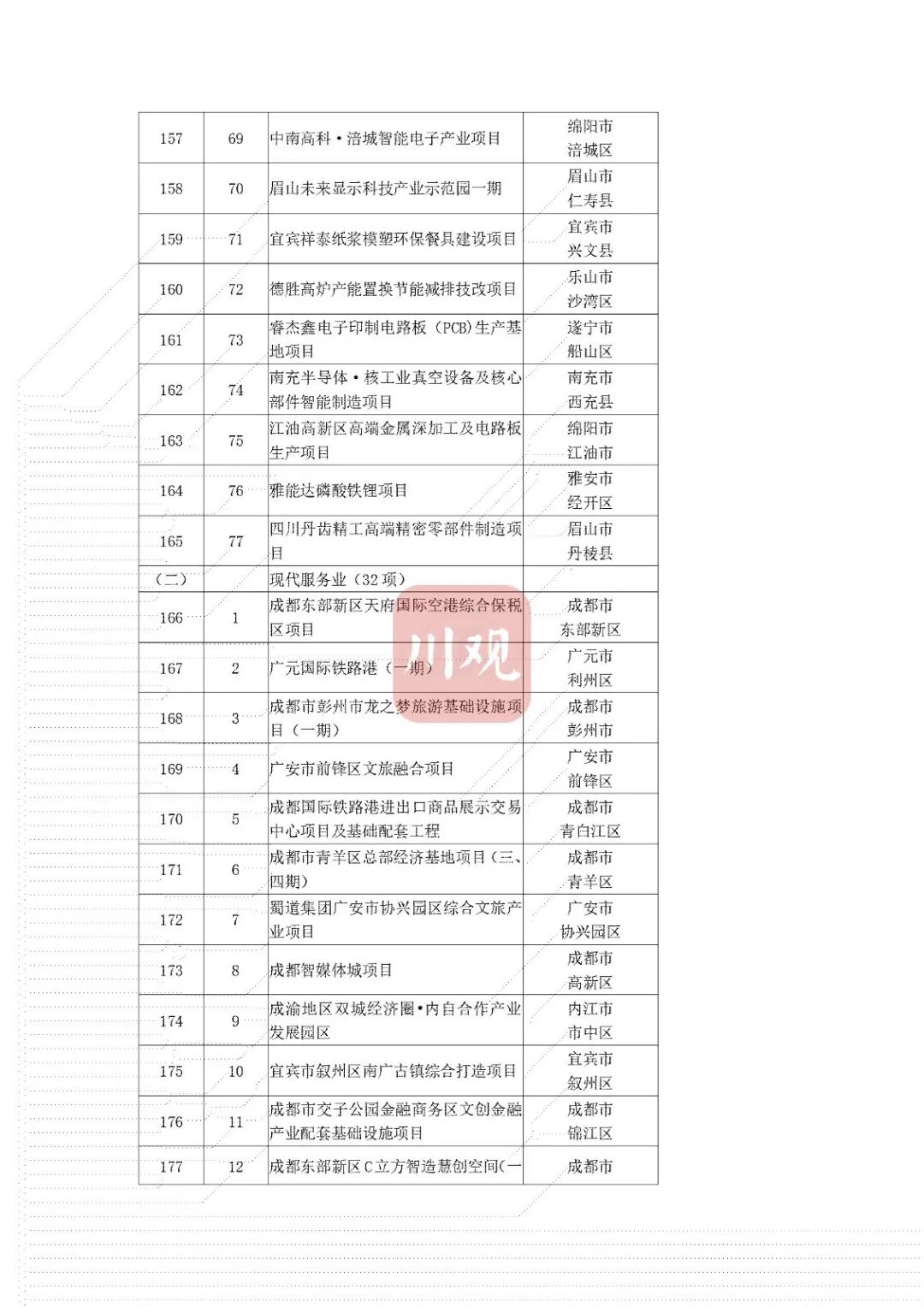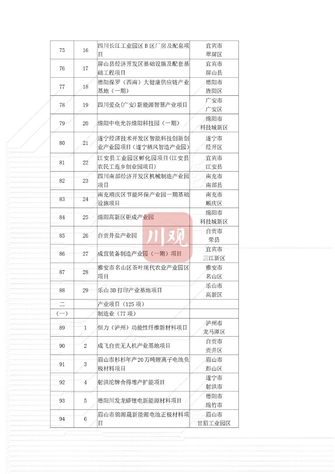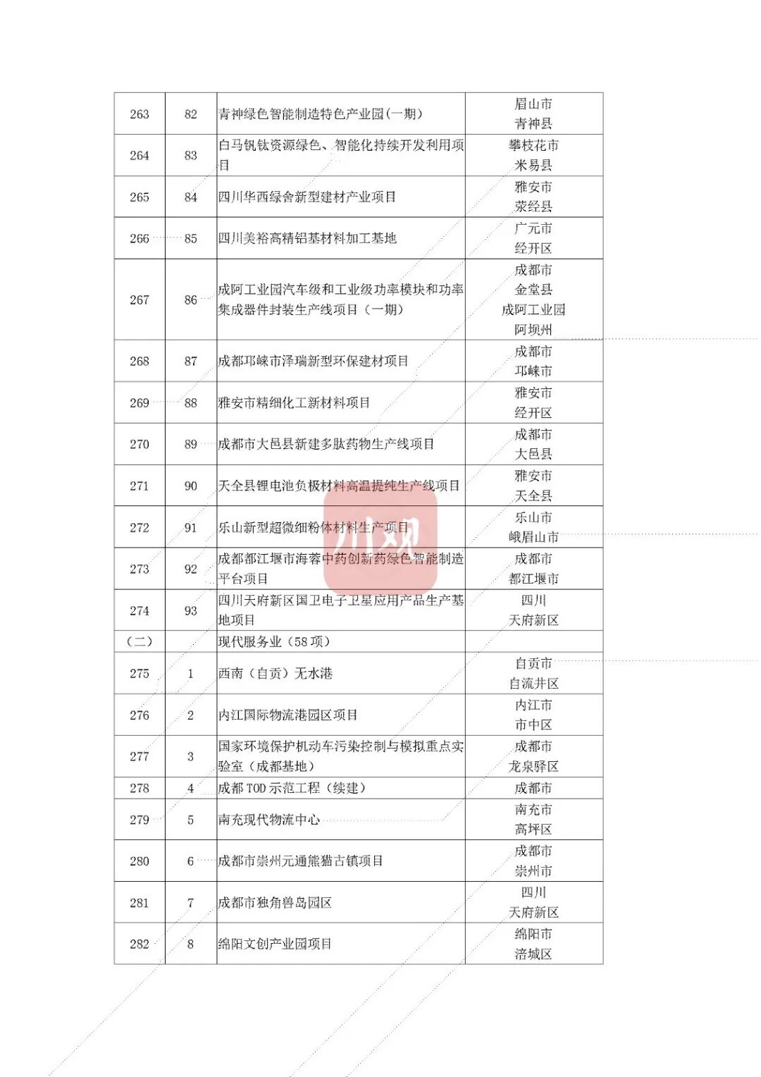 其中,产业项目数量位居最多,为327个,包括恒力(泸州)功能性纤维新材料项目、眉山市杉杉年产20万吨锂离子电池负极材料项目等。基础设施项目位居次席,达269个,重点涵盖G4216线仁寿至攀枝花高速公路、亭子口灌区一期工程等。而民生工程及社会事业项目和生态建设及环境保护项目则分别为78个、26个。