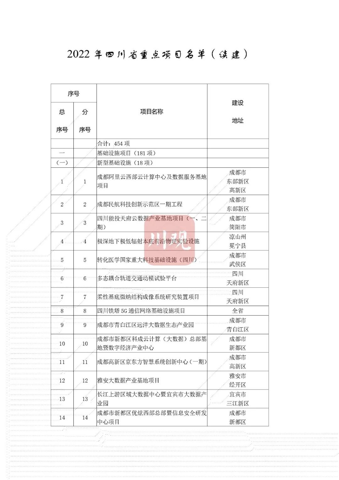 日前,四川公布了《2022年四川省重点项目名单》,名单共列项目700个。其中,续建项目454个,计划2022年开工项目246个。