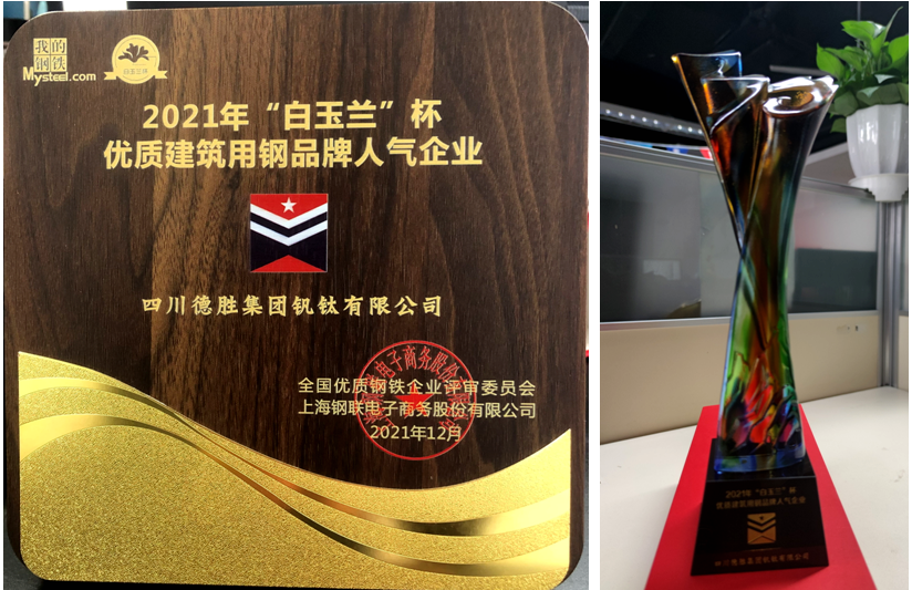 德胜钒钛荣获2021年“白玉兰”杯优质建筑用钢品牌人气企业