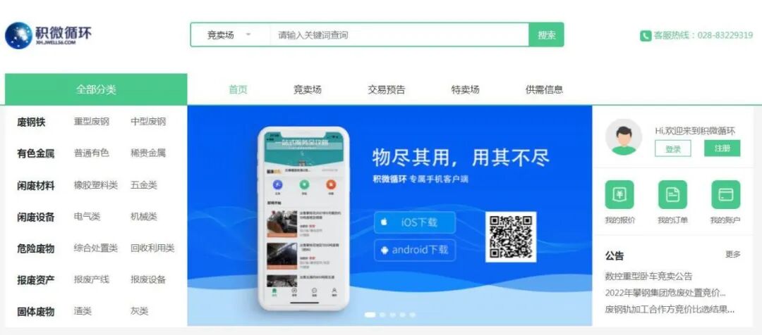 深耕大宗商品领域的产业互联网平台企业积微物联,早在几年前就启动针对再生资源领域的探索。围绕该领域的发展痛点和客户的需求,积微物联以互联网思维,打造了积微循环平台,致力于为客户提供最优的再生资源整体处置方案。几年的发展历程中,积微循环从线上搭建起了平台,为买卖双方提供一个信息交互、资源交易的线上“市场”;从线下建设基地,并不断形成专业、规范的线下服务流程。以“线上”+“线下”的创新模式,以“互联网+循环经济”为核心,积微循环致力于聚合社会资源,为用户提供再生资源的在线交易、分级分类、加工、仓储、物流配送等一站式服务方案,努力实现再生资源共享及价值最大化。