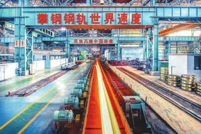 步入攀钢集团轨梁厂万能二号线,一股热浪扑面而来。智能化生产线上,一条橙红色钢轨,如长蛇般从大型机械中“游”出来。