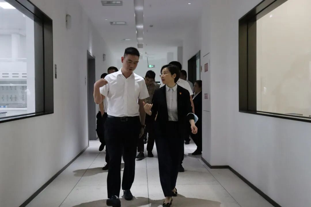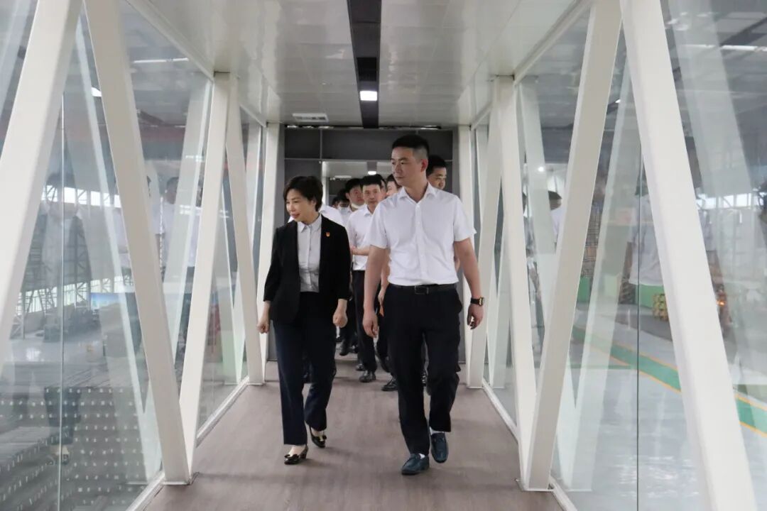何晓霞书记一行来到产品检验中心和智慧大楼,了解公司智慧工厂建设情况。客人们还深入生产线现场,了解生产情况。