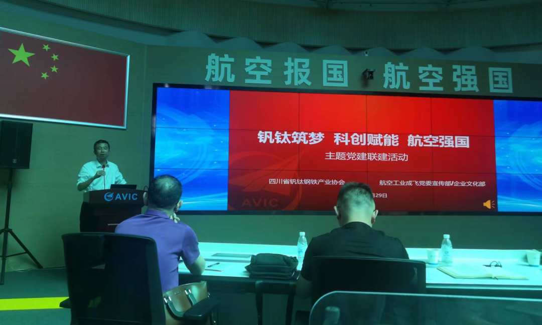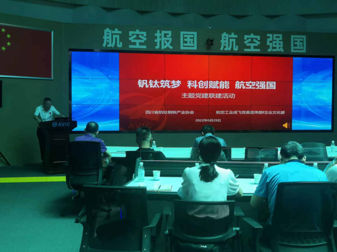 为迎接党的二十大召开,弘扬党的优良传统,传承党的优良作风,进一步增强党组织的凝聚力和战斗力,激发全体党员的责任感、荣誉感和使命感。2022年6月29日,四川省钒钛钢铁产业协会党支部联合航空工业成都飞机工业集团有限责任公司(以下简称“成飞”)以“钒钛筑梦 科创赋能 航空强国”为主题,开展了“七一”主题党日联建活动。
