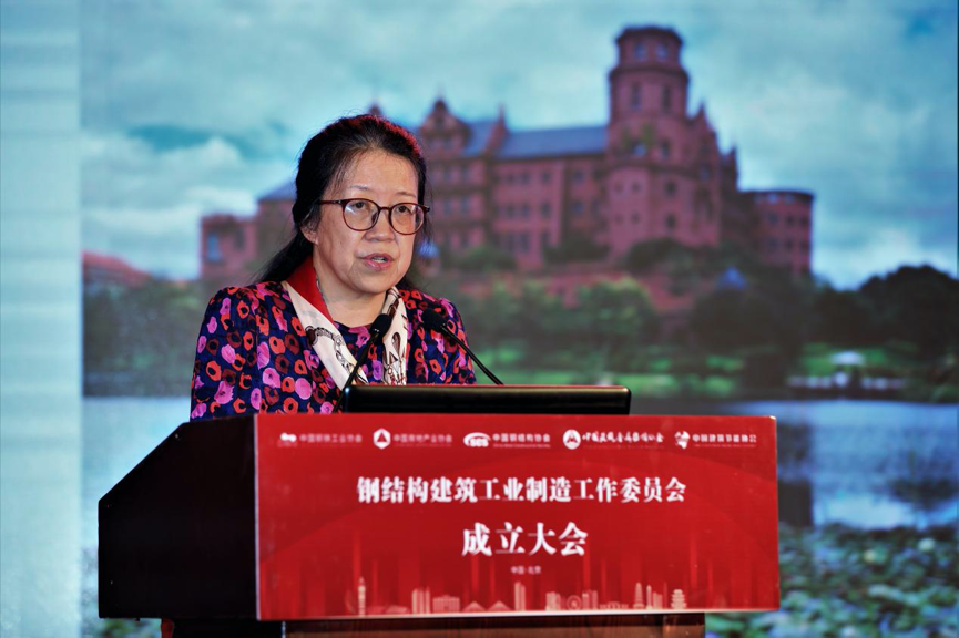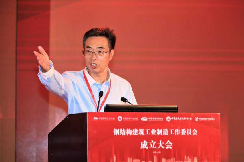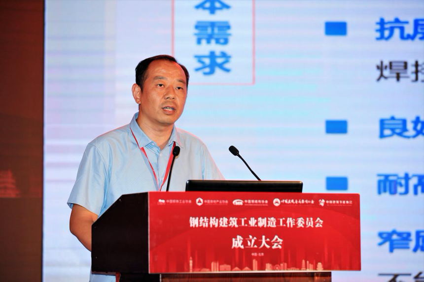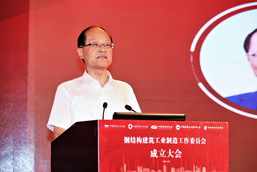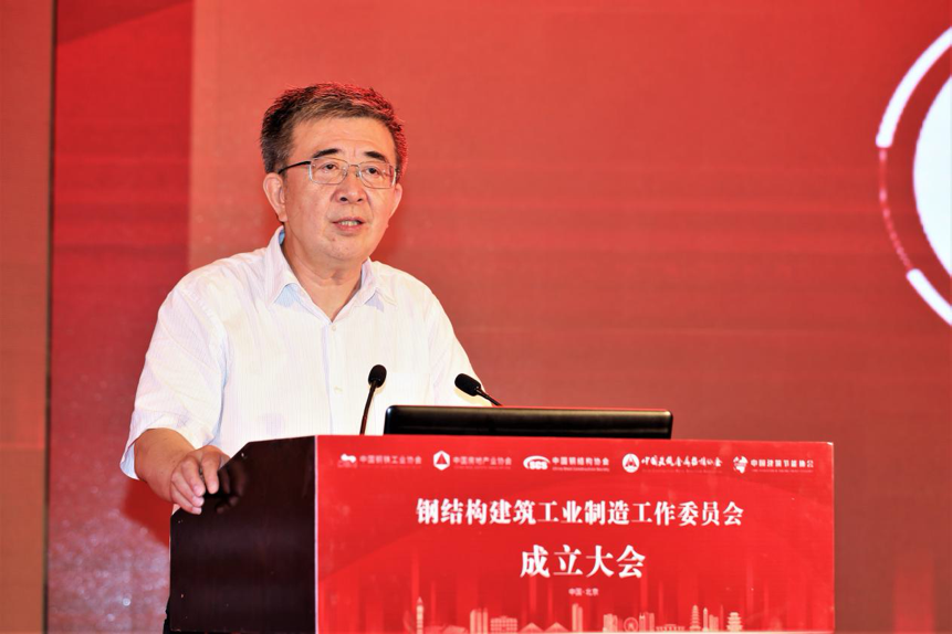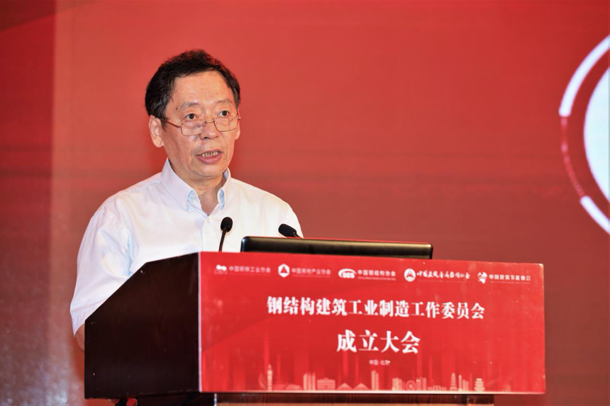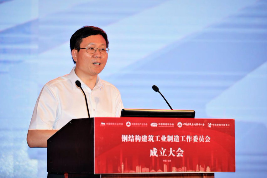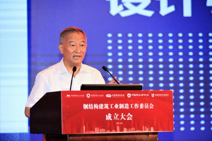 陈宜明在致辞中首先对委员会的成立表示祝贺。他认为,委员会的成立本质上是钢铁业和建筑业的结合,这两个行业本就是“骨肉关系”,并且双方有非常友好的合作历史。他表示,在以往的发展过程当中,针对钢结构的特点,我们坚持先公共建筑后住宅的发展路径,但是技术发展到今天,同时还要积极发展钢结构住宅。按照国家统计局发布的数据,去年全国住宅新开工面积约14.7亿平方米,在这个量当中,钢结构住宅占的比例还不高,发展空间还很大。发展钢结构建筑是在积极贯彻落实国家“十三五”期间提出的“藏钢于建筑”战略目标,以及2016年印发的《国务院办公厅关于大力发展装配式建筑的指导意见》的具体任务和要求。他希望,未来依托委员会,钢结构建筑的发展能够坚持简洁衔接、开发配套、建立体系(技术体系、材料体系和标准规范体系)、提高品质4个方面,在“双碳”背景下达到一个更好的发展水平。