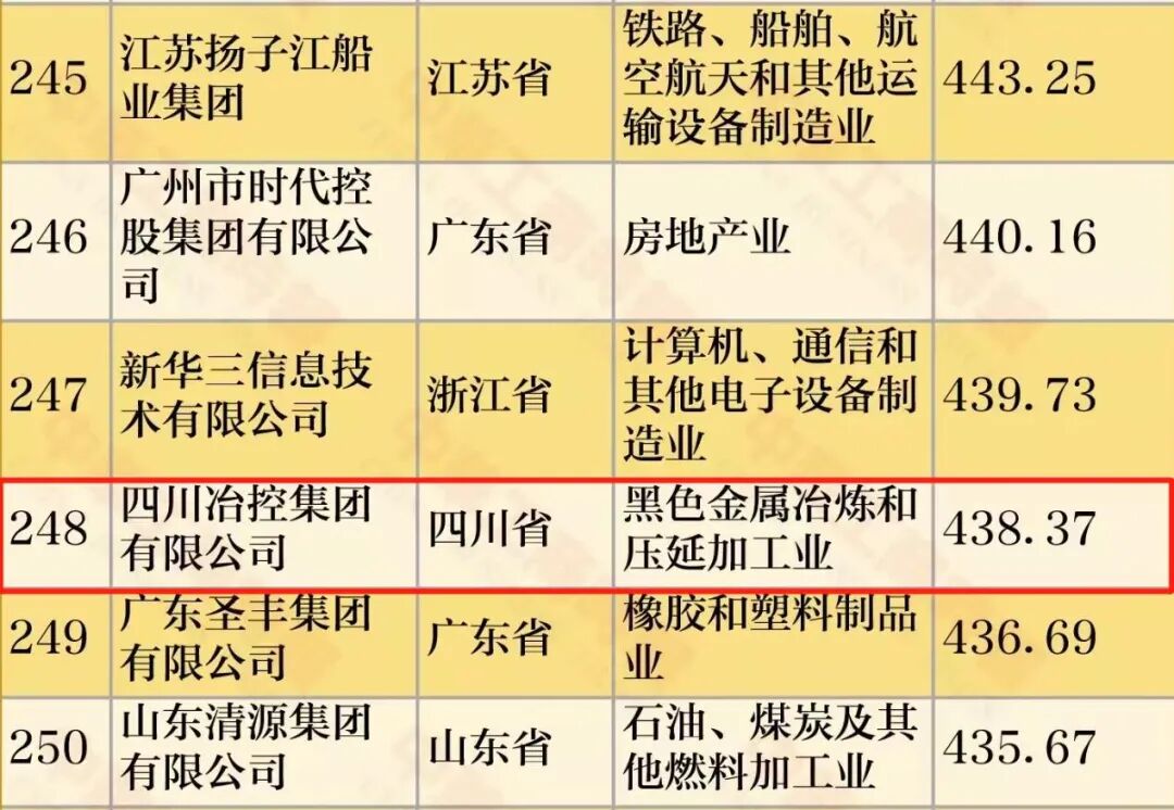 四川冶控集团有限公司(简称“冶控集团”)荣登双榜,分别位列中国民营企业500强第248位、中国制造业民营企业500强第157位。